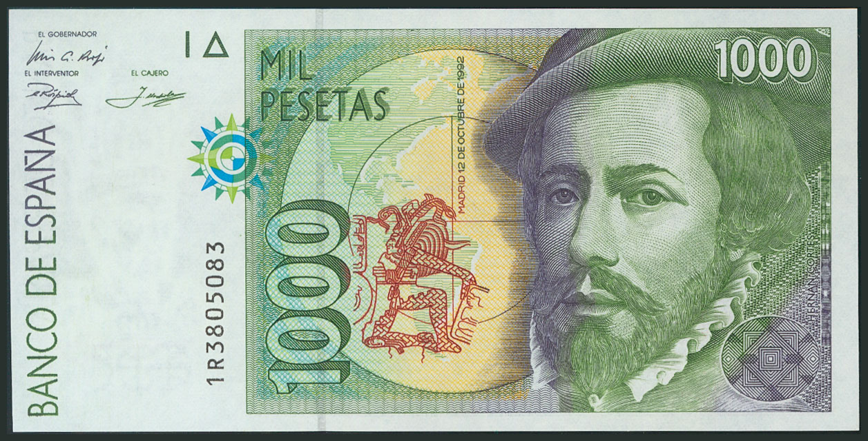 1000 Pesetas. 12 de Octubre de 1992. Tipo I. Serie 1R y numeración capicúa. (Edifil 2017: 483a). SC.