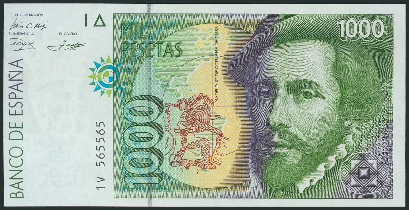 1000 Pesetas. 12 de Octubre de 1992. Tipo II. Serie 1V y numeración capicúa. (Edifil 2017: 483b). SC.