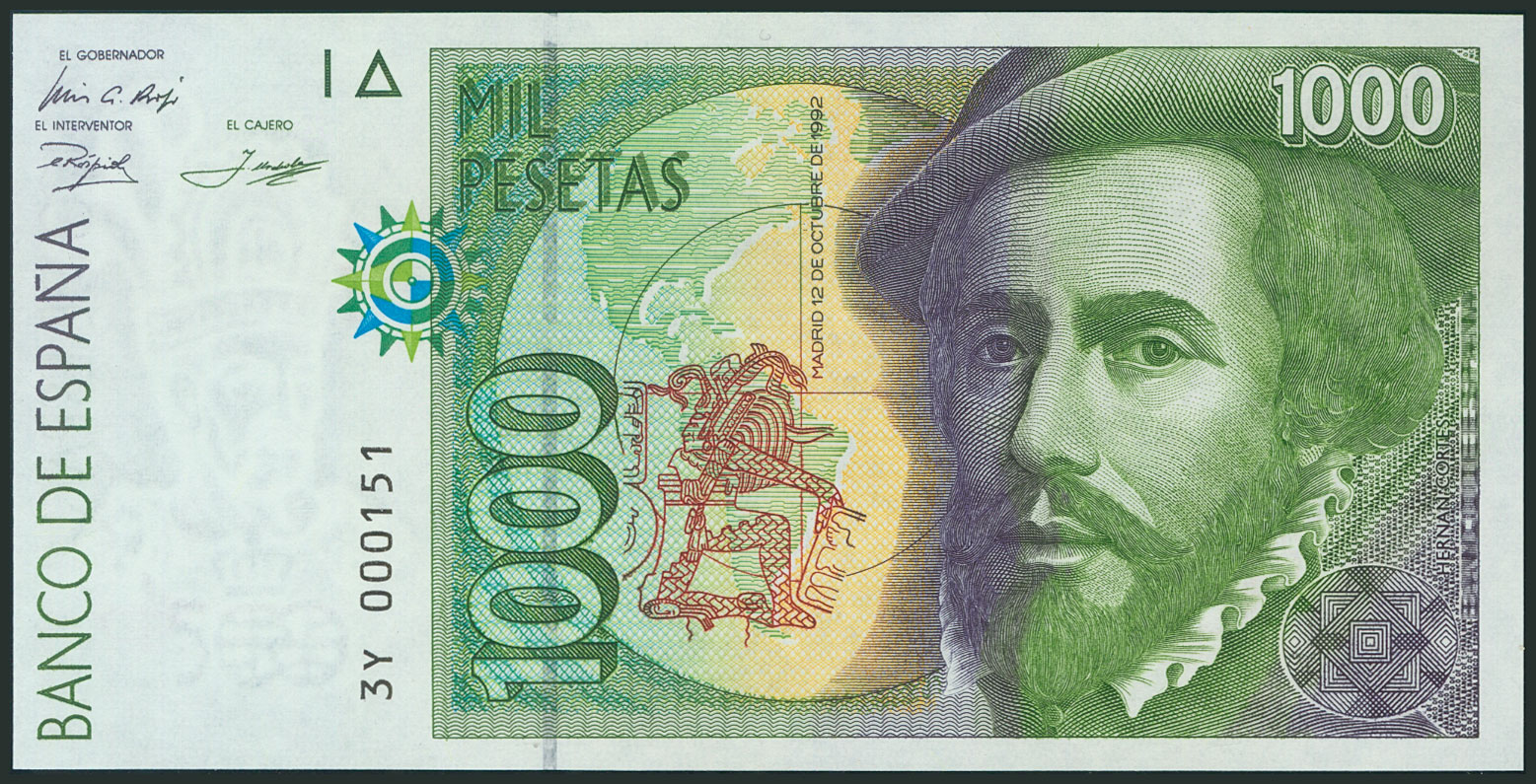 1000 Pesetas. 12 de Octubre de 1992. Tipo II. Serie 3Y y numeración baja y capicúa. (Edifil 2017: 483b). SC.