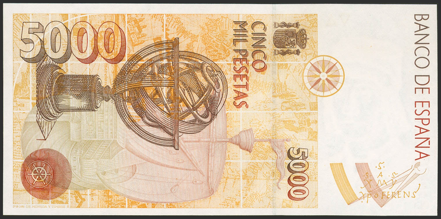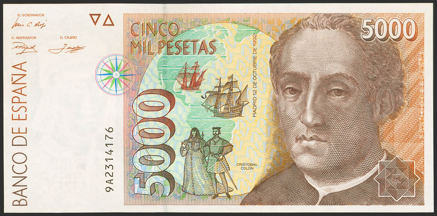 5000 Pesetas. 12 de Octubre de 1992. Serie especial 9A. (Edifil 2023: 484b). SC.