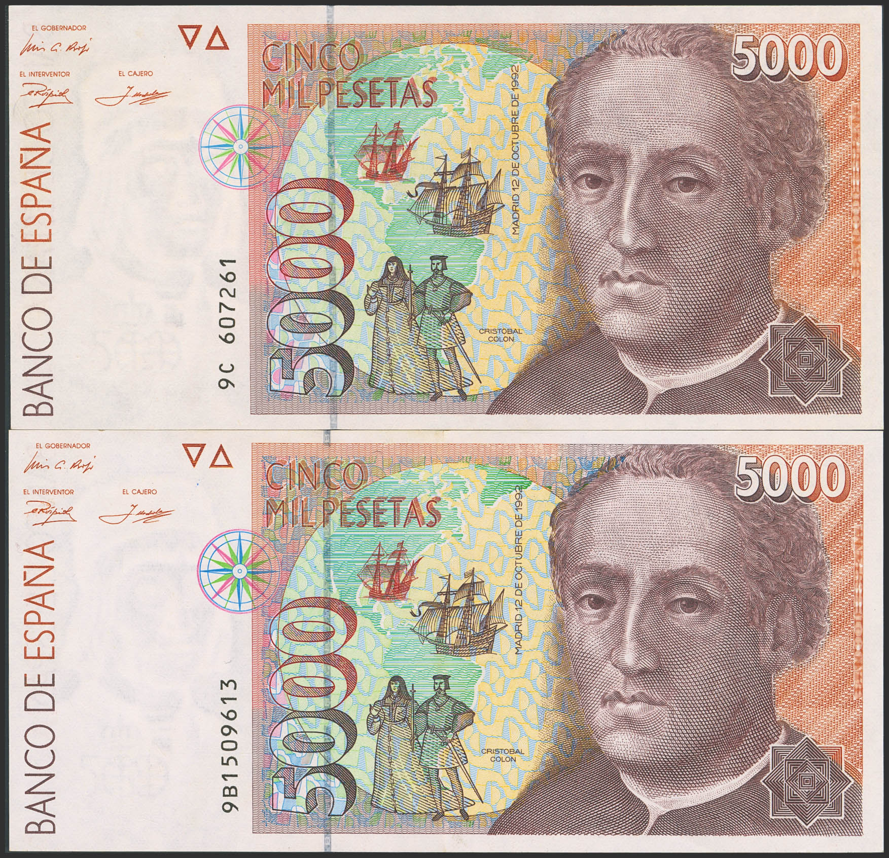 5000 Pesetas. 12 de Octubre de 1992. Series especiales 9B y 9C. (Edifil 2023: 484b). EBC+++.