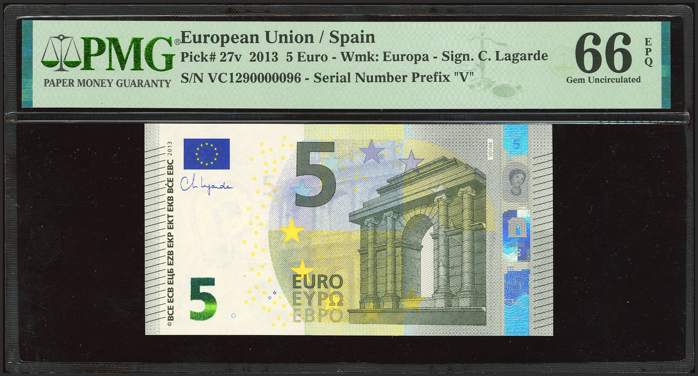5 Euros. 2013. Firma Lagarde. Serie VC (España). (Edifil 2023: 493Aa, Pick: 27v). SC. Encapsulado PMG66EPQ.