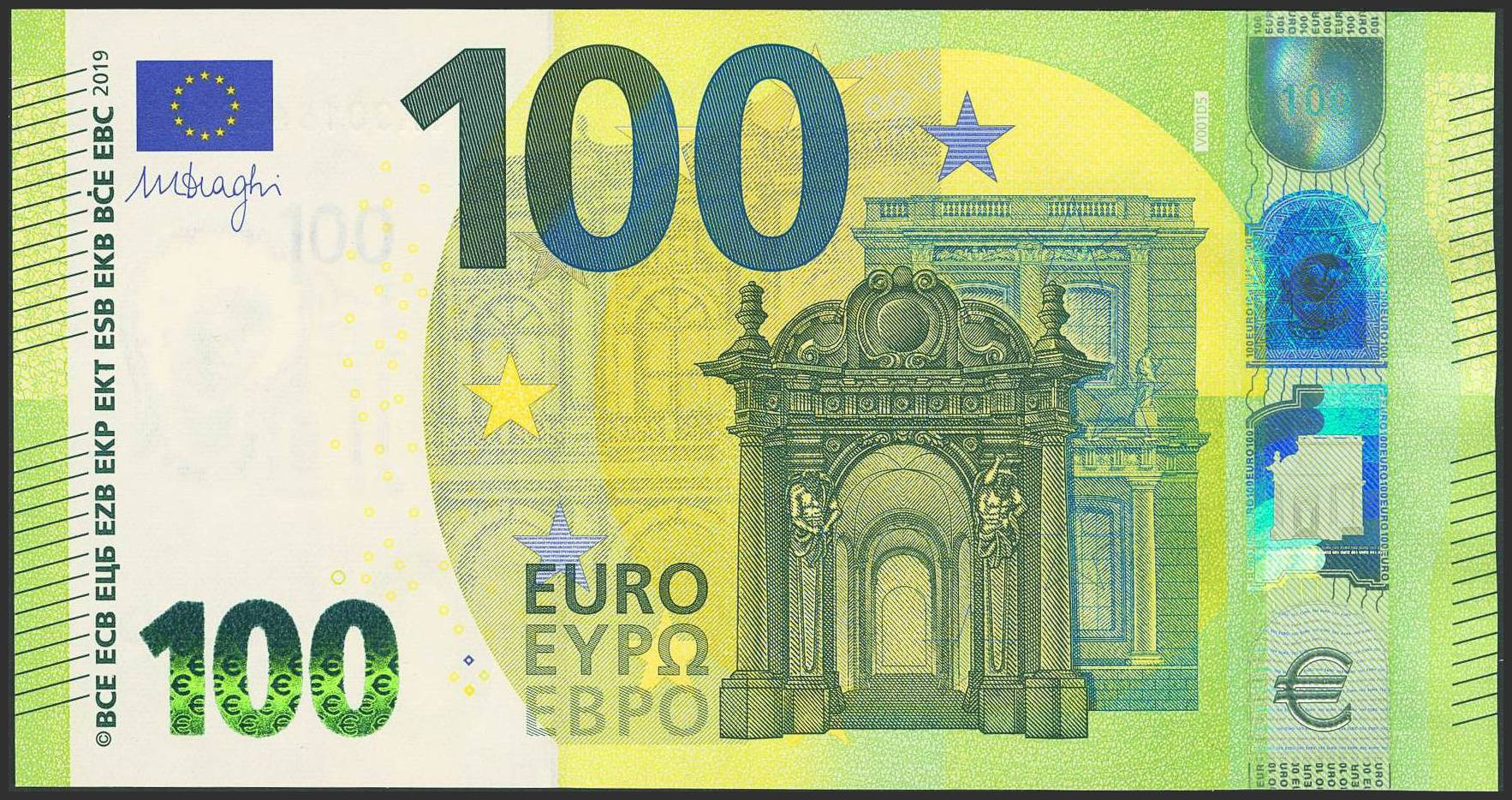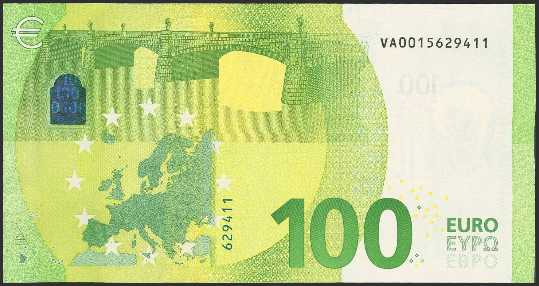 100 Euros. 2019. Firma Draghi. Serie VA (España) y numeración baja. (Edifil 2023: 497, Pick: 24v). SC.