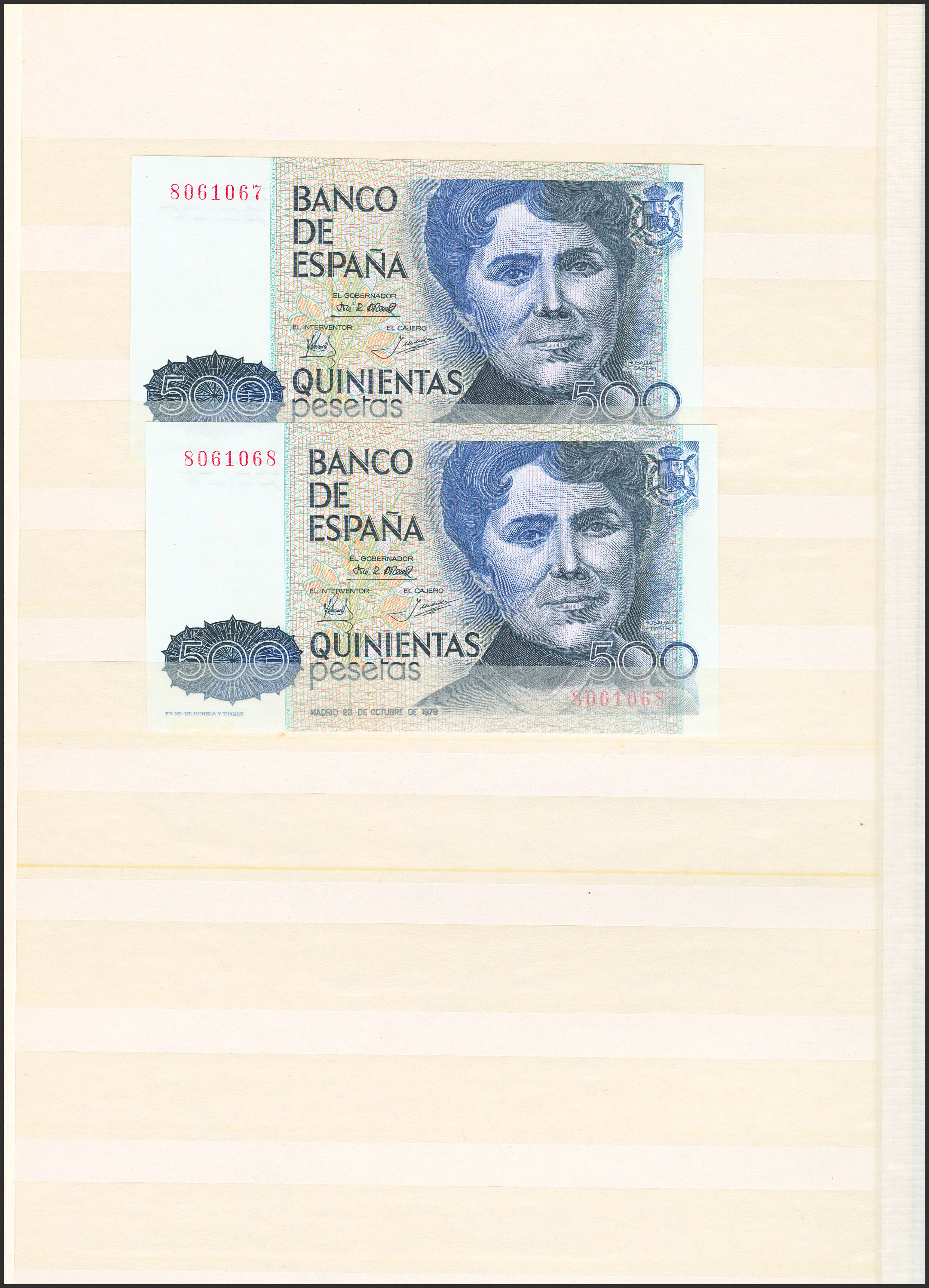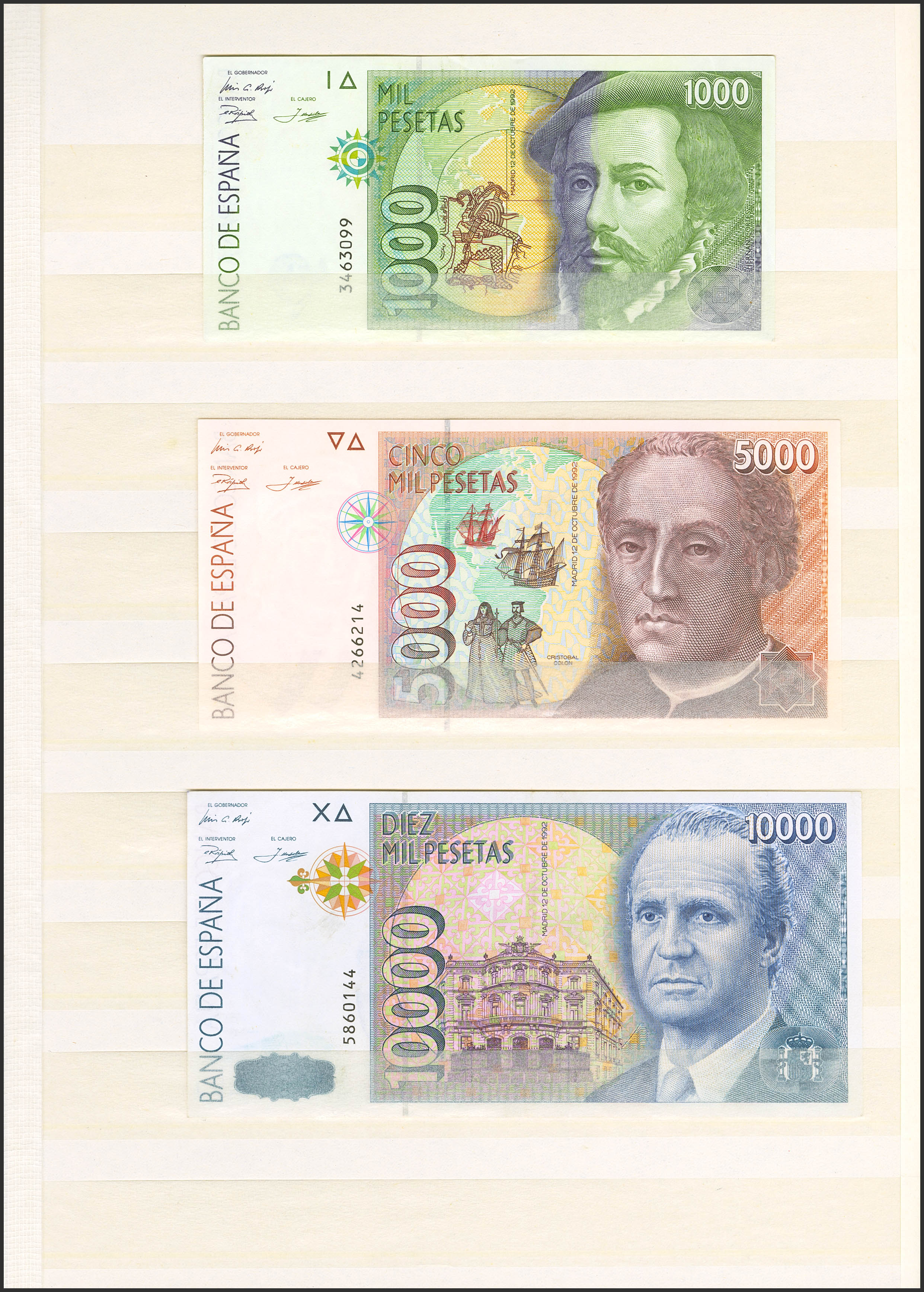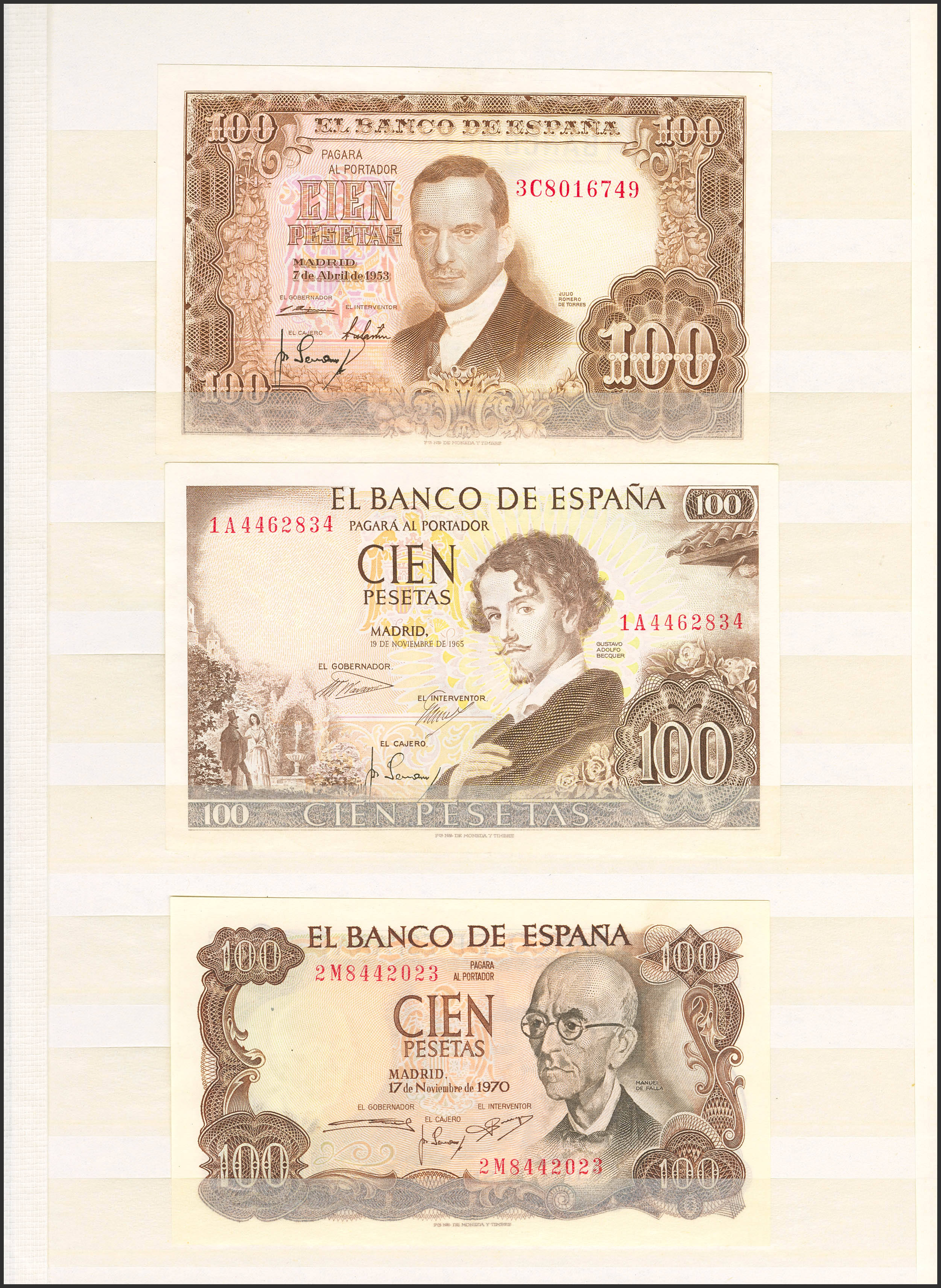 Conjunto de 8 billetes del Banco de España de diferentes emisiones y en diversas calidades. A EXAMINAR