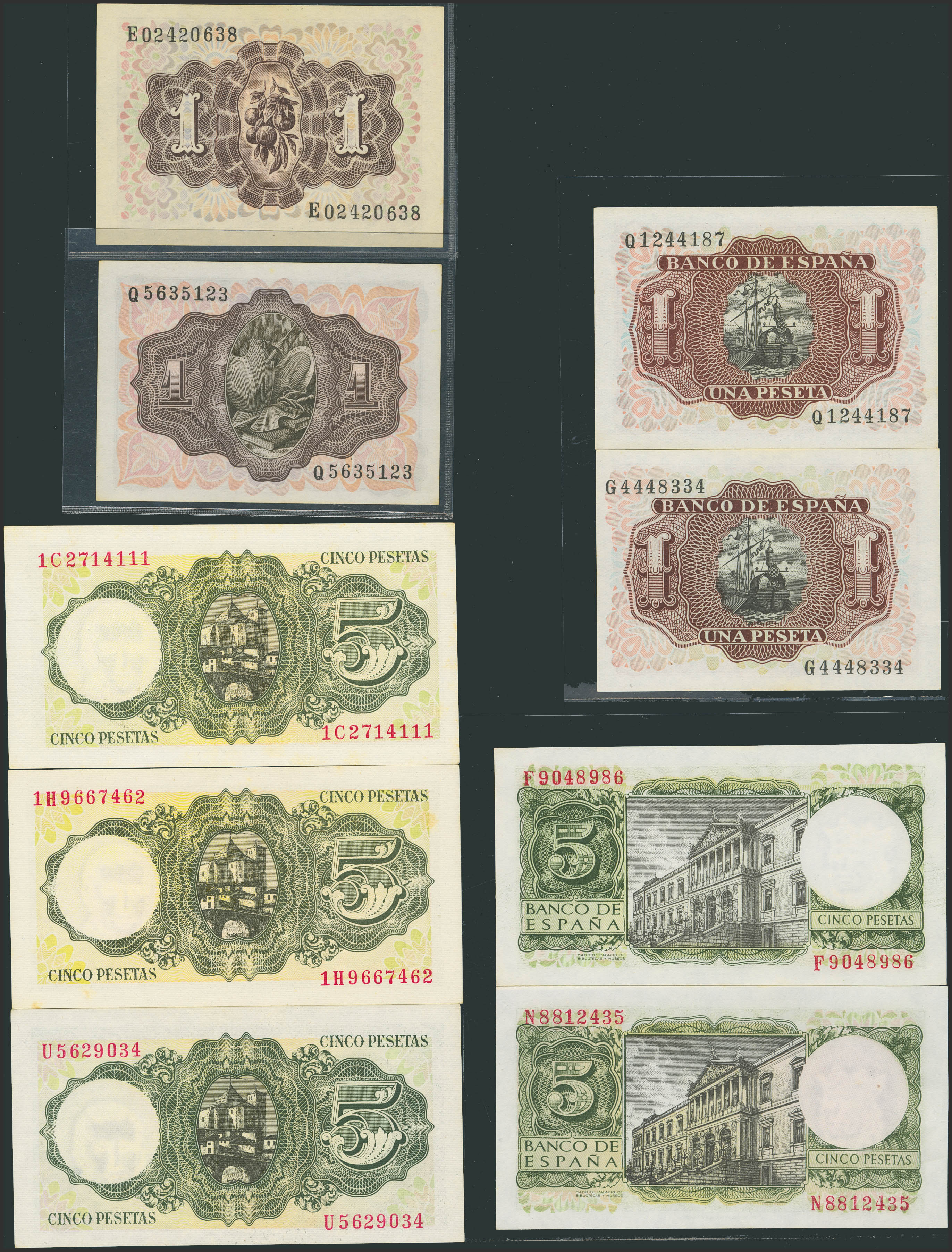 Conjunto de 9 billetes del Banco de España de diferentes emisiones y en general buenas calidades. A EXAMINAR.
