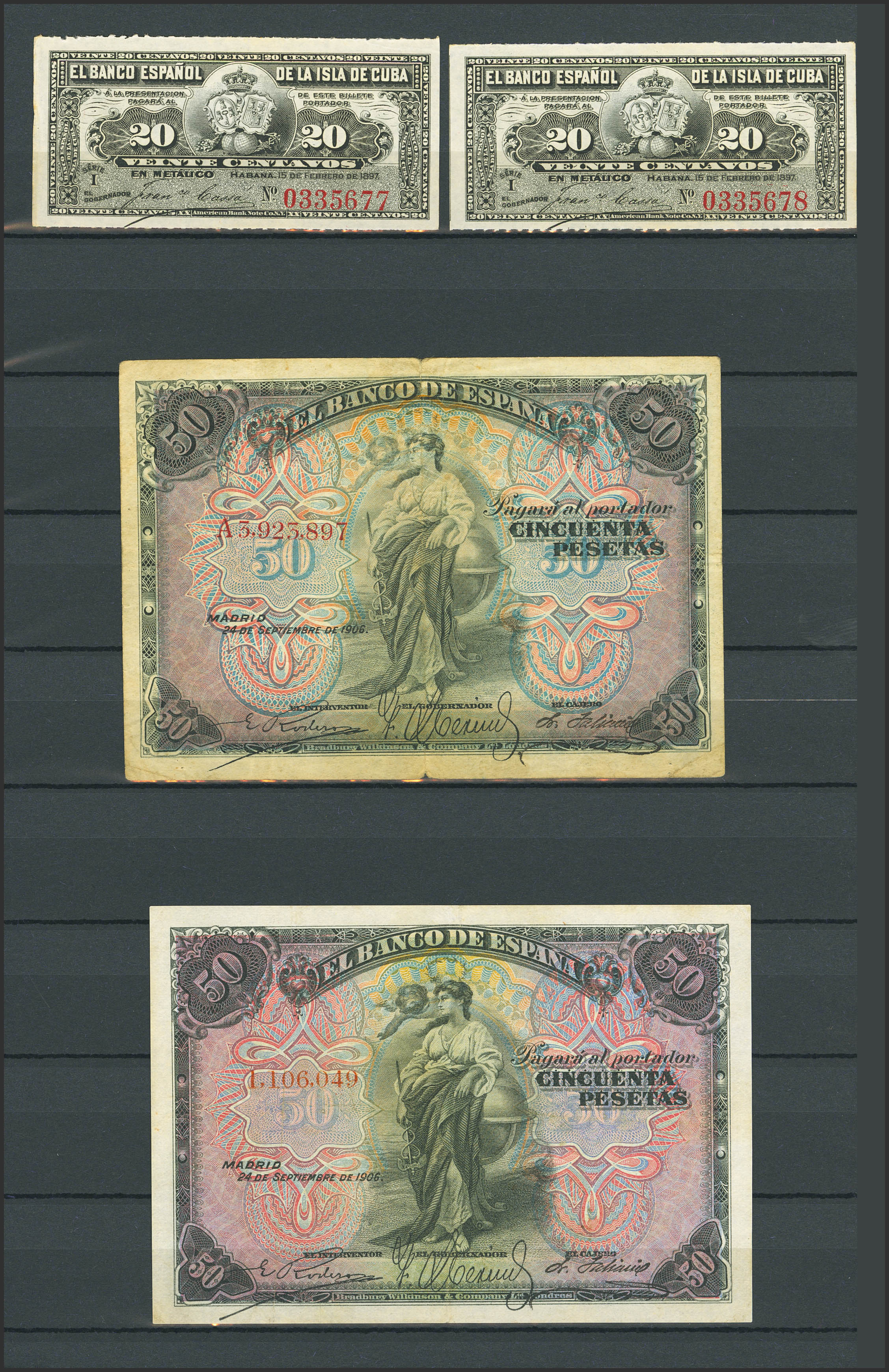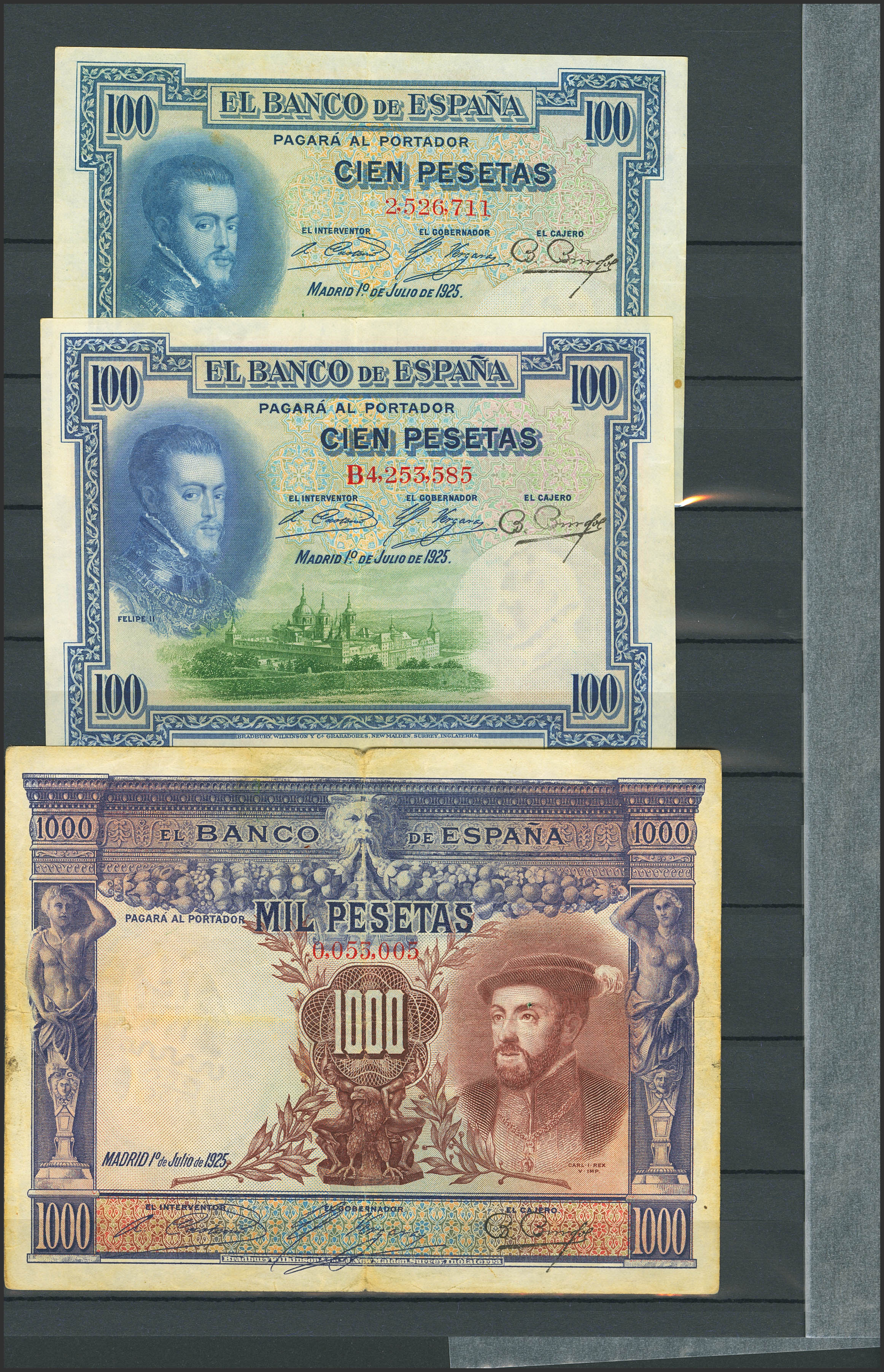 Conjunto de más de 20 billetes del Banco de España de diferentes emisiones, la mayoría buenas calidades. A EXAMINAR.