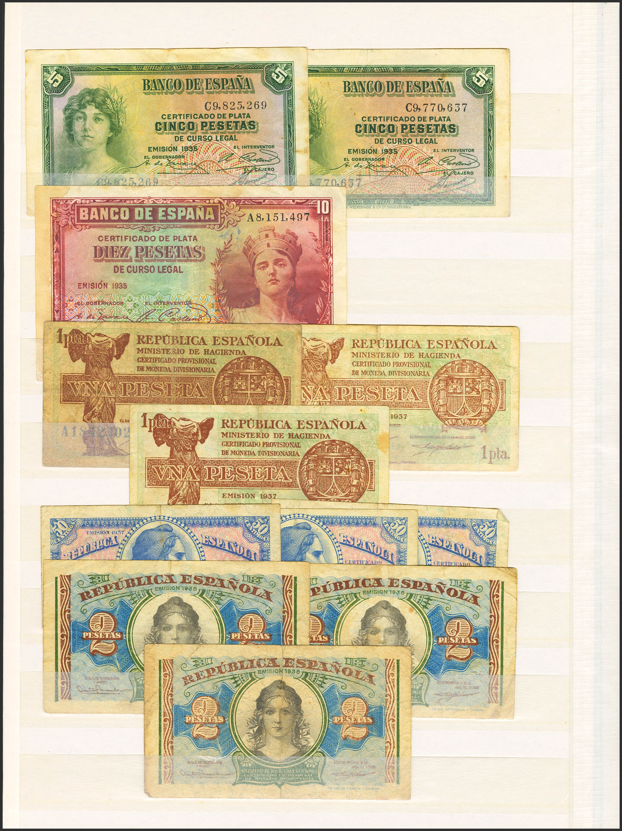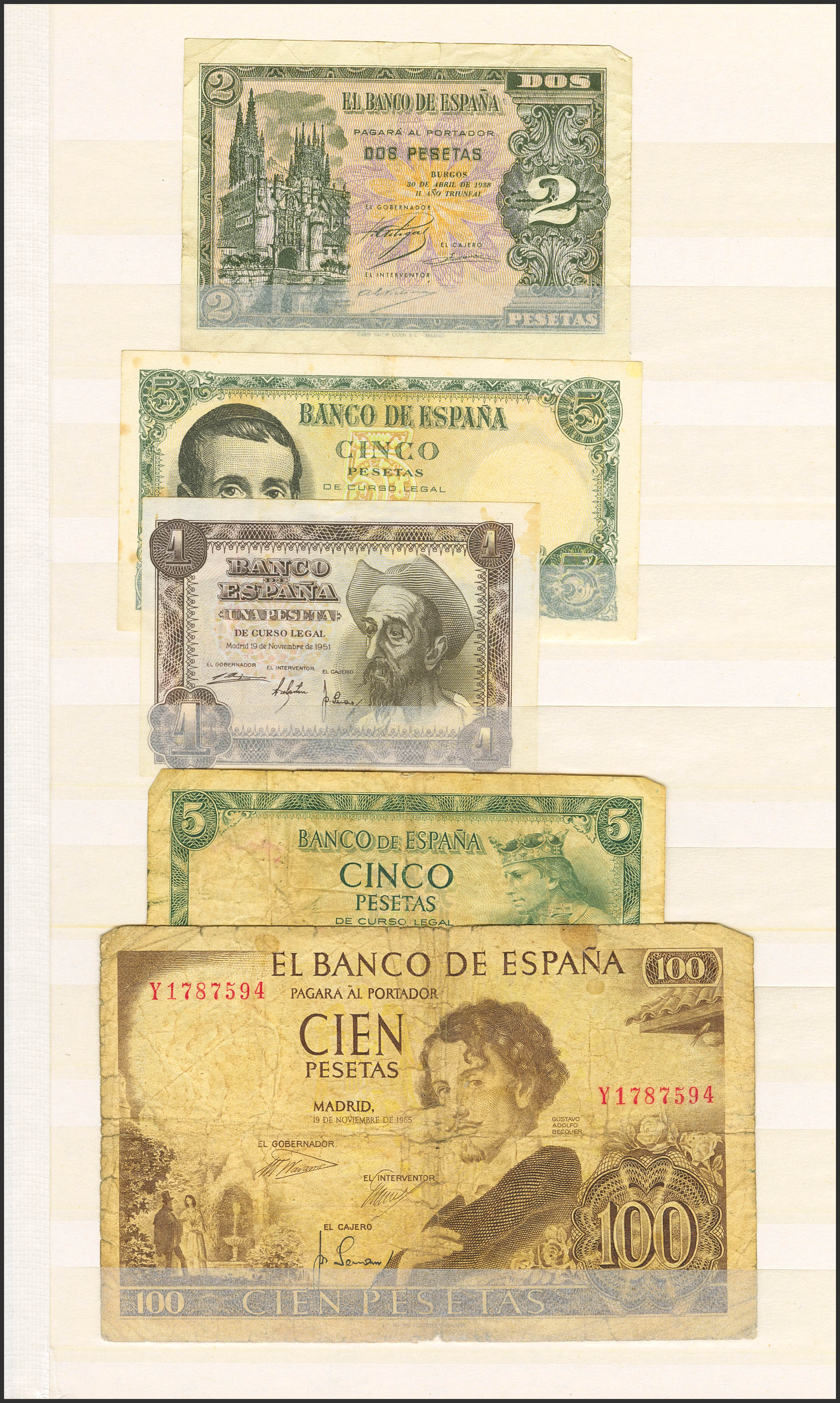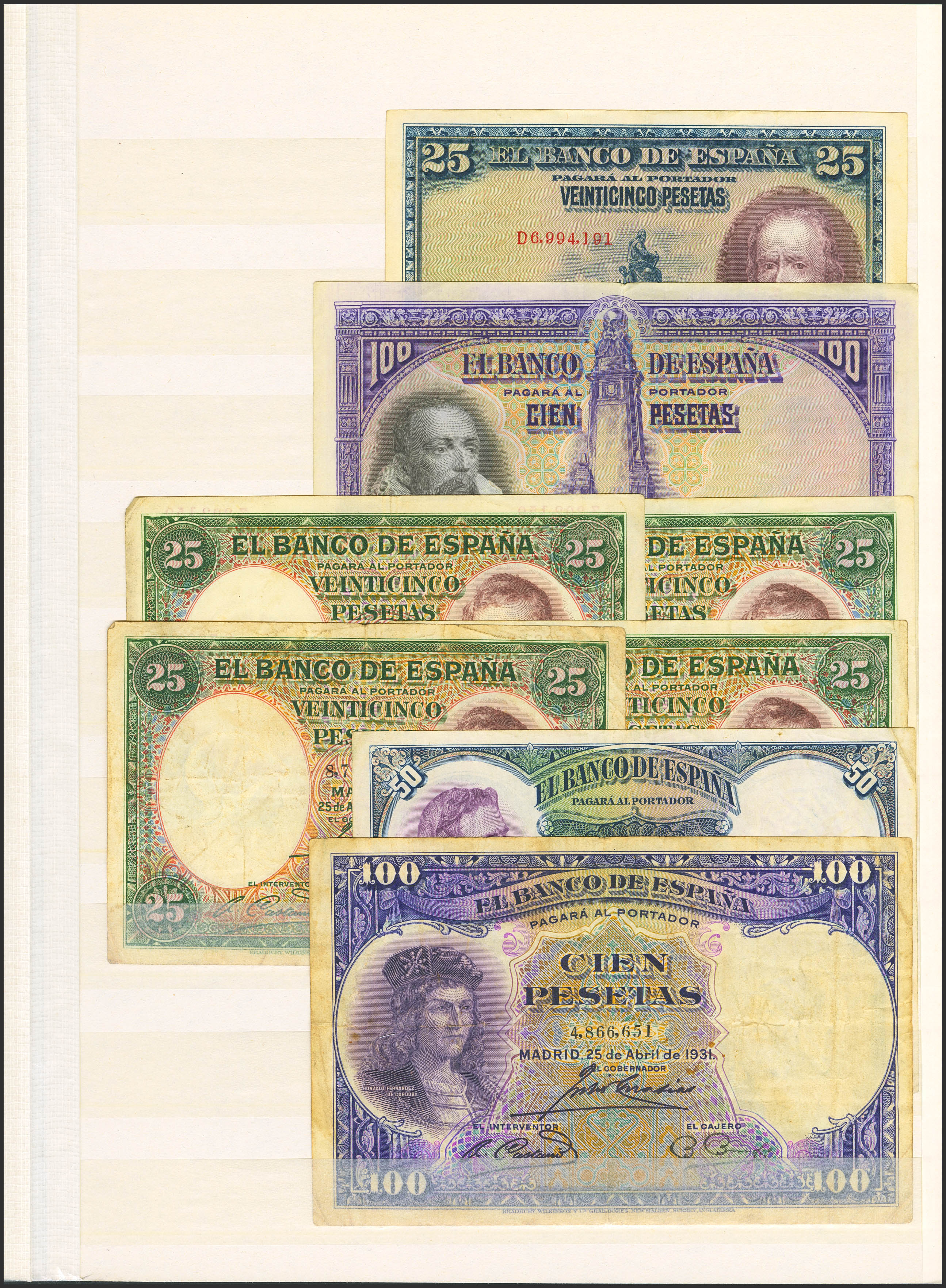 Conjunto de 25 billetes del Banco de España de diferentes emisiones y en diversas calidades. A EXAMINAR