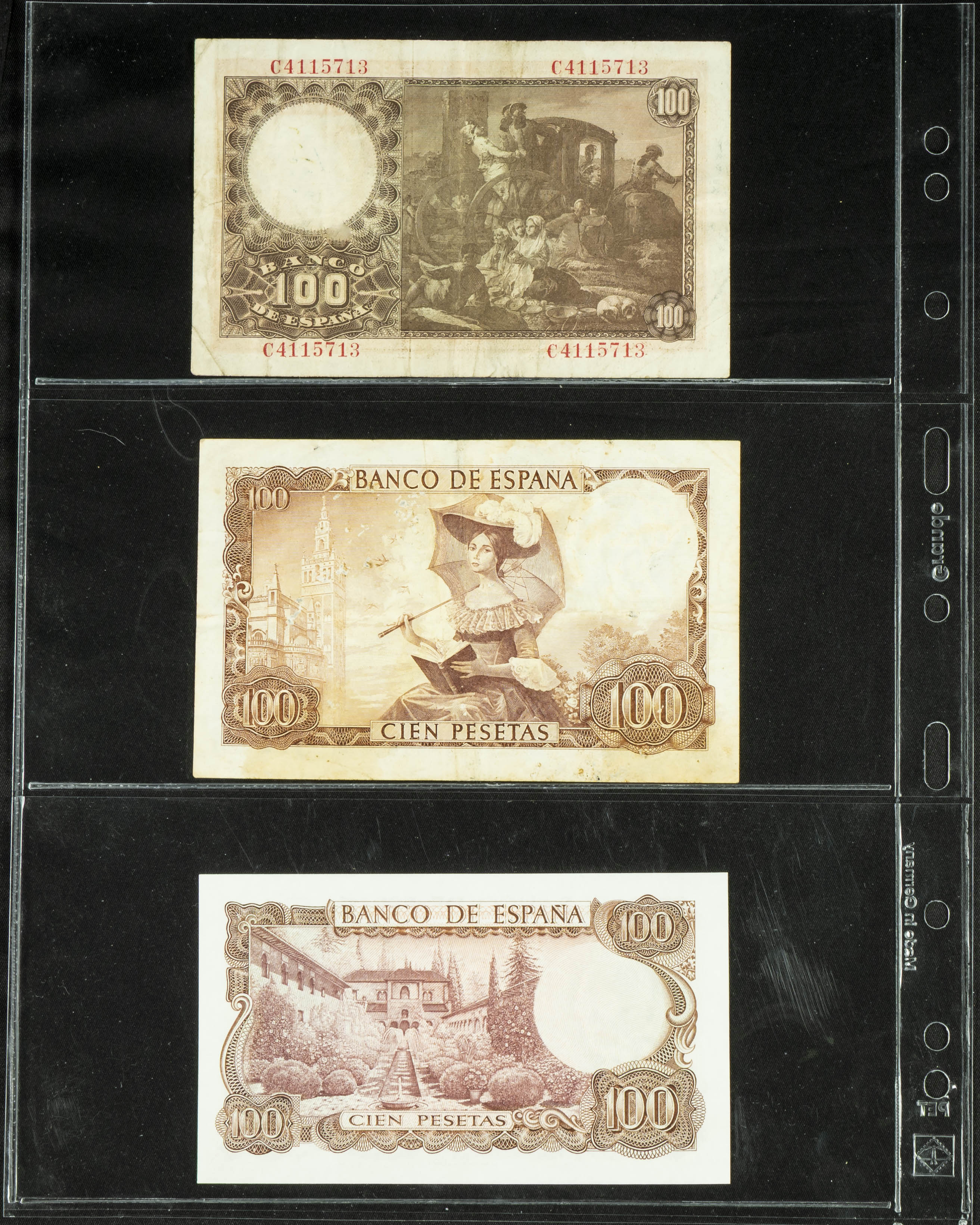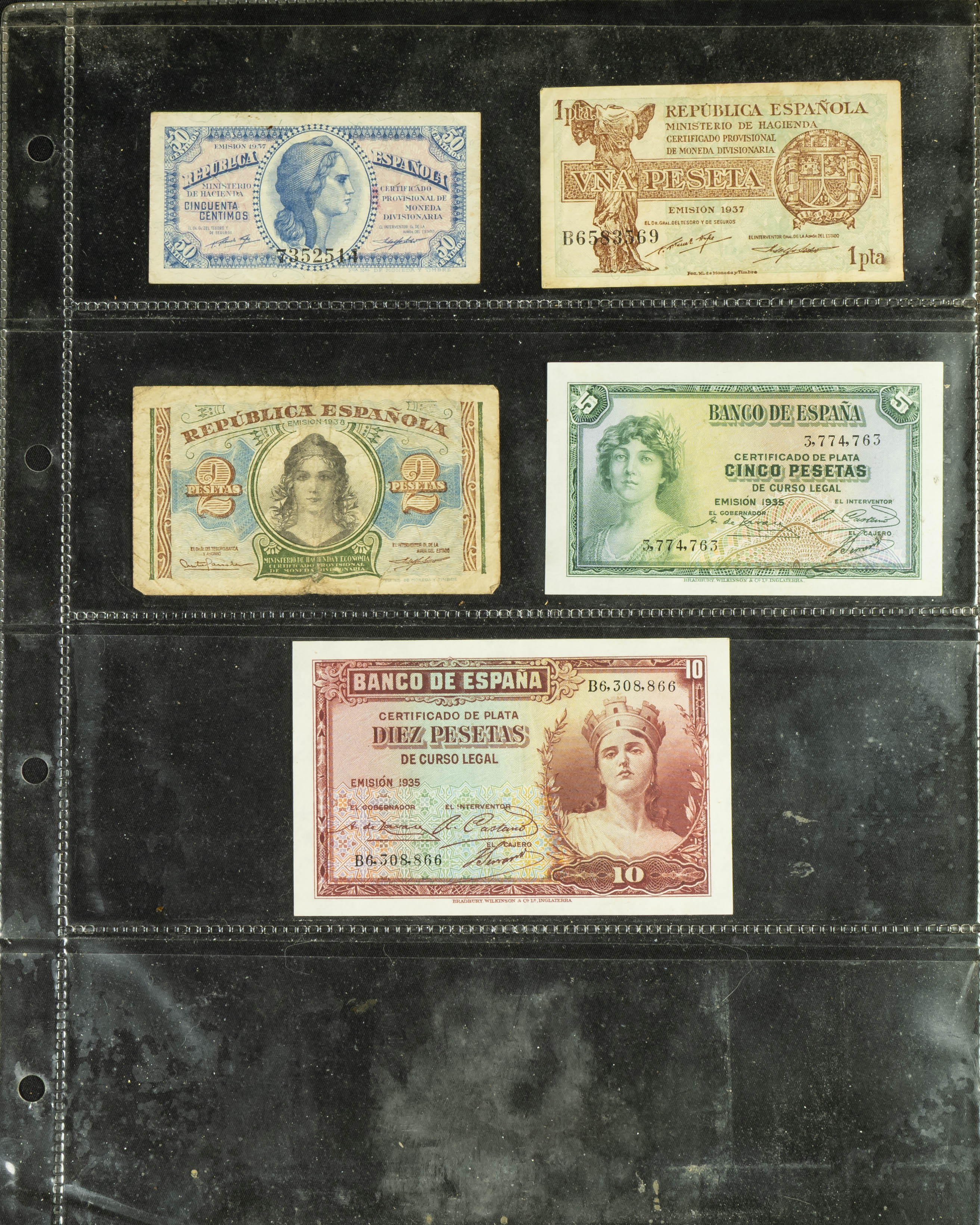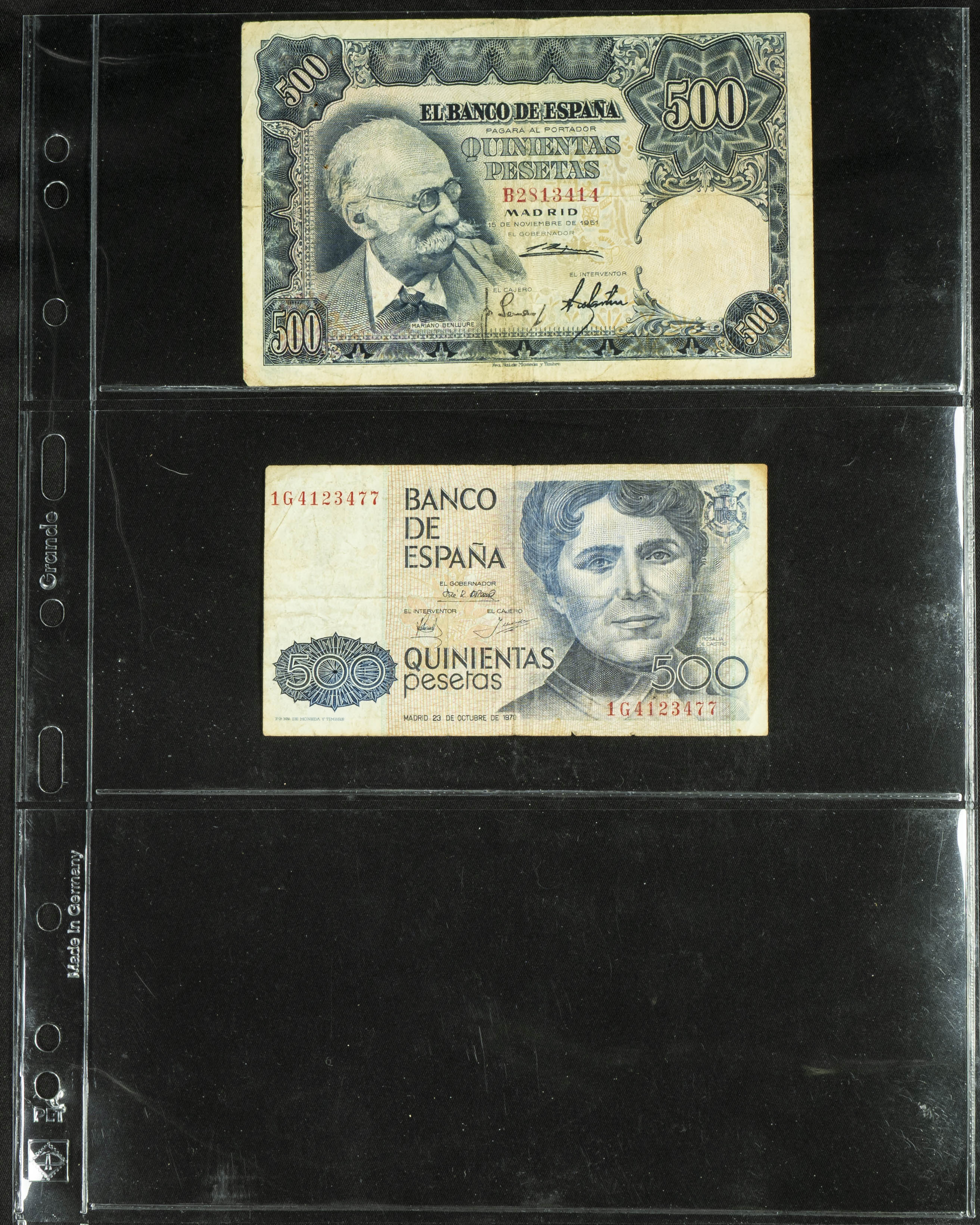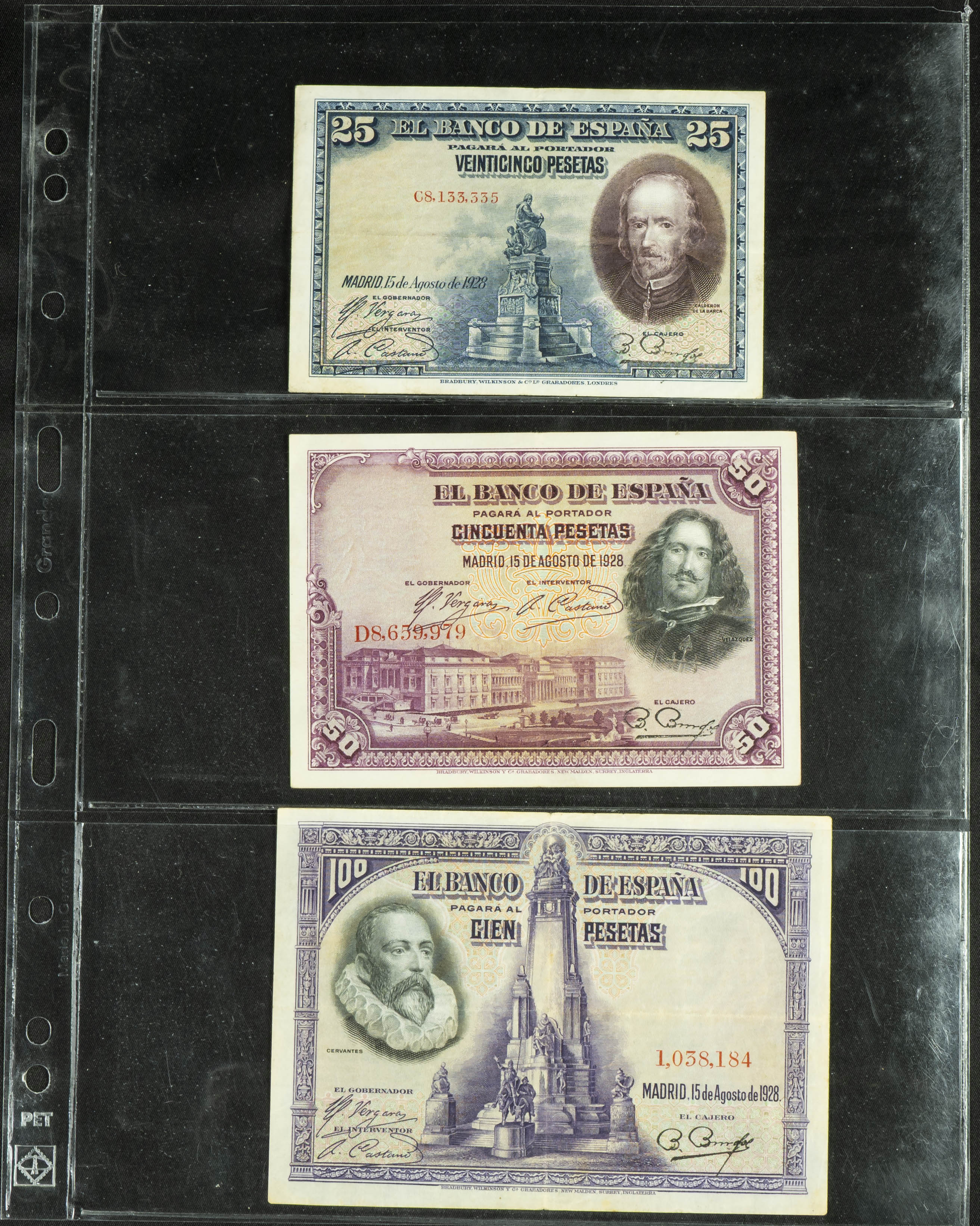 Interesante conjunto de más de 30 billetes del Banco de España de diferentes emisiones y en diversas calidades, incluyendo un billete de Cuba Colonial encapsulado por PMG. A EXAMINAR