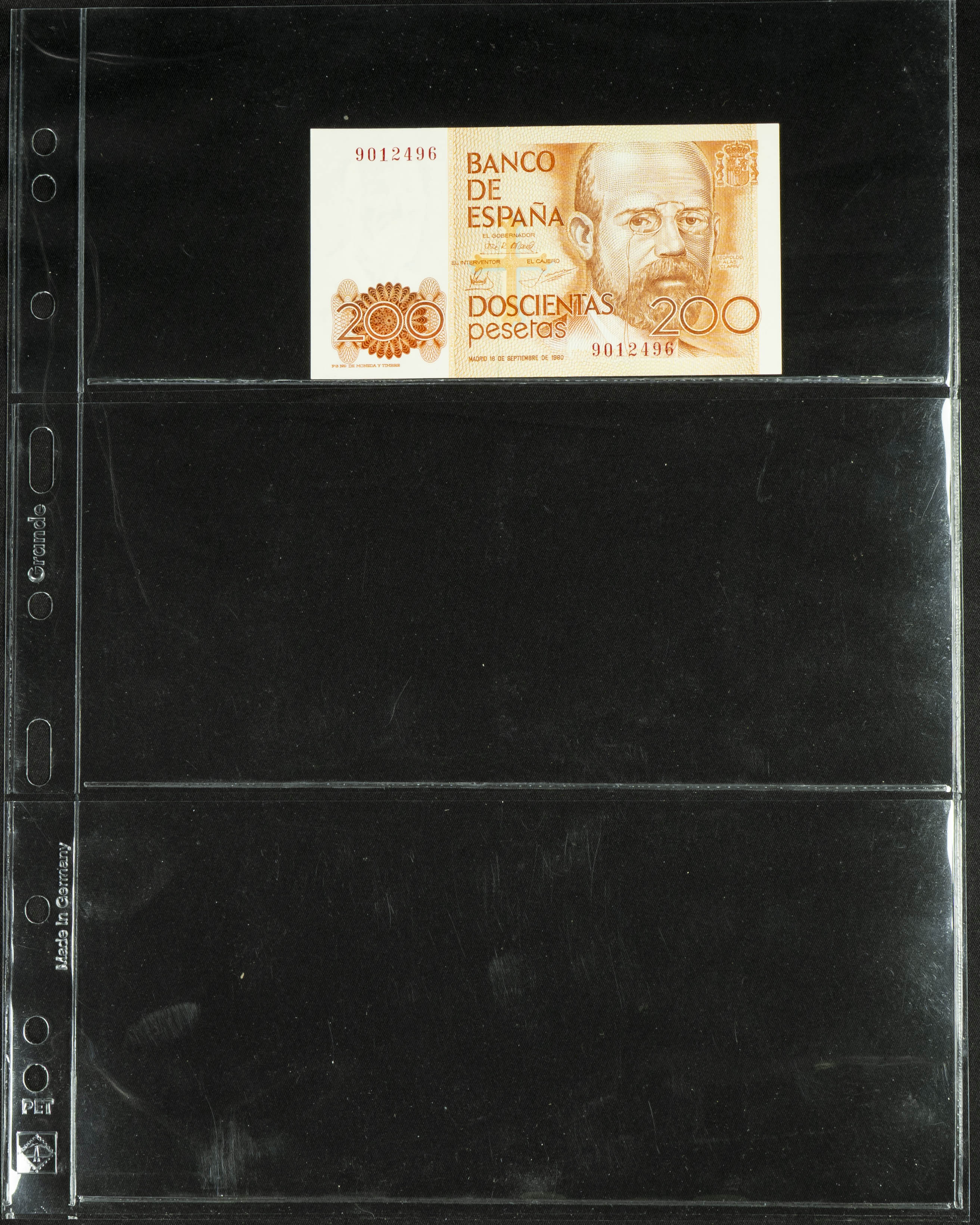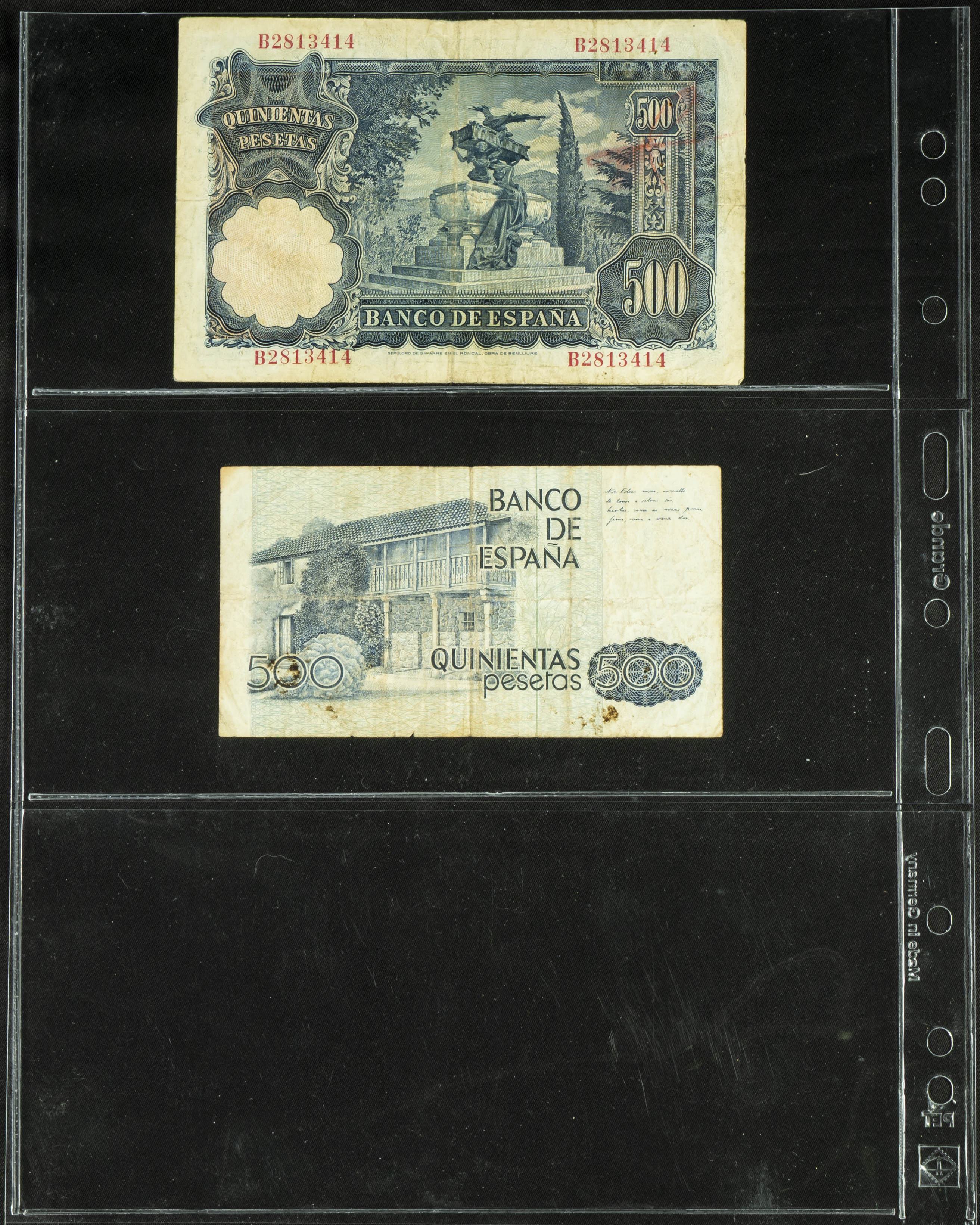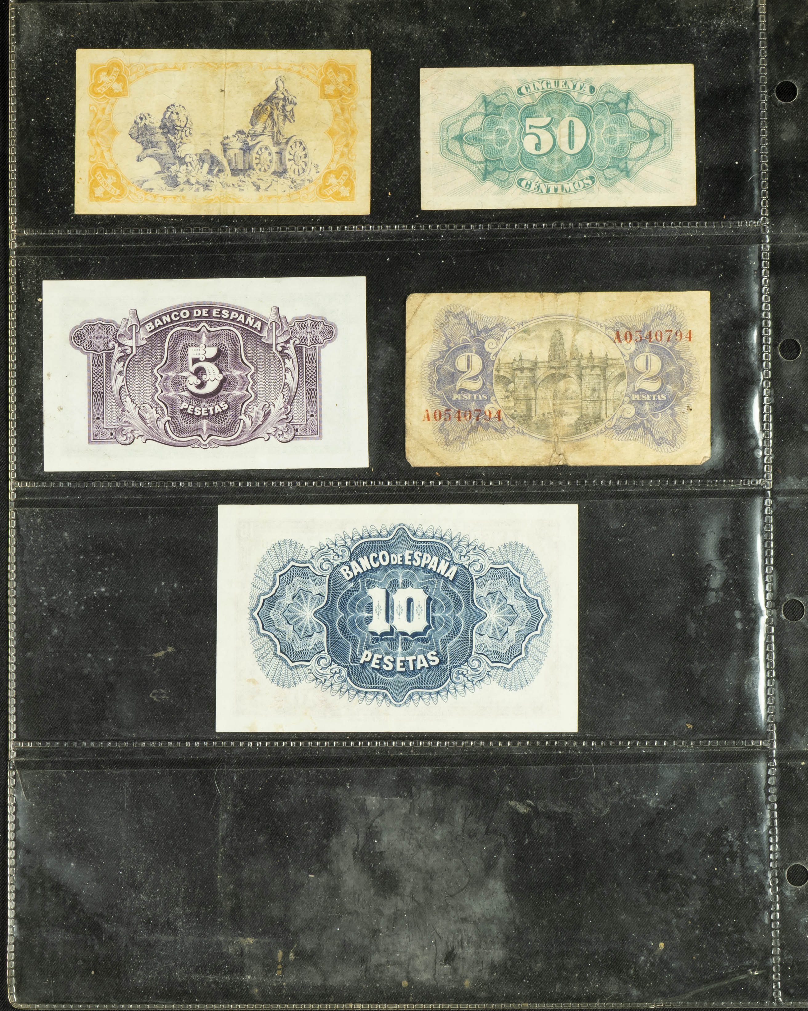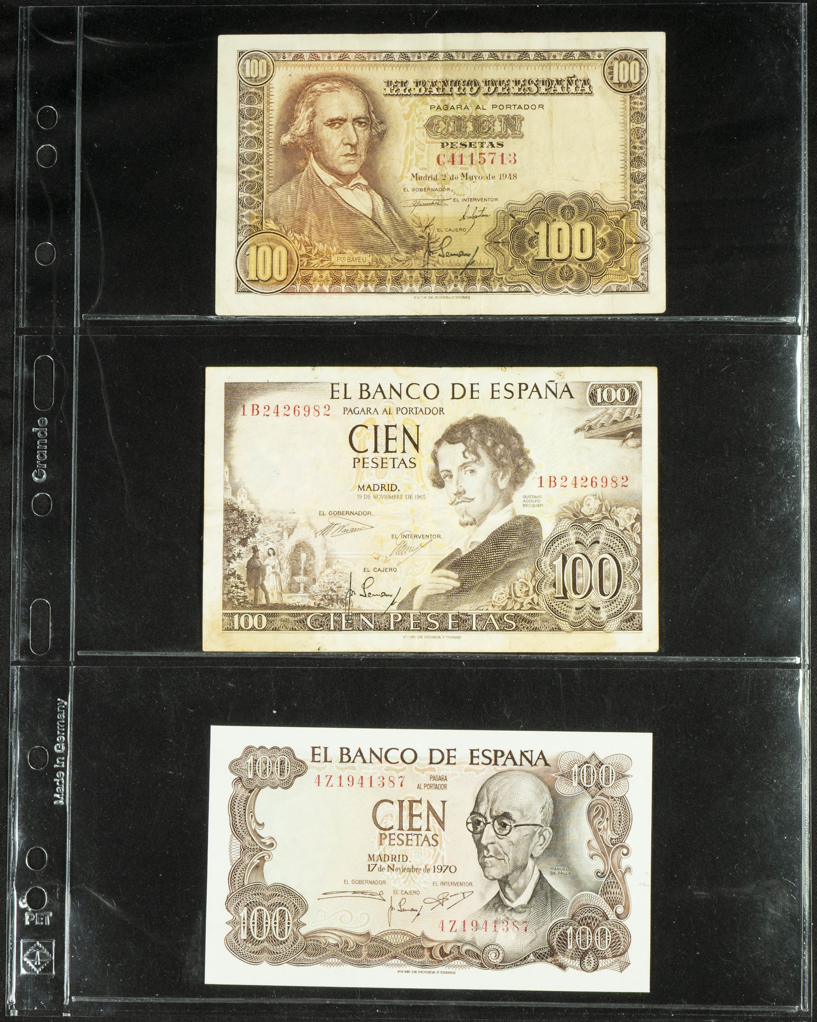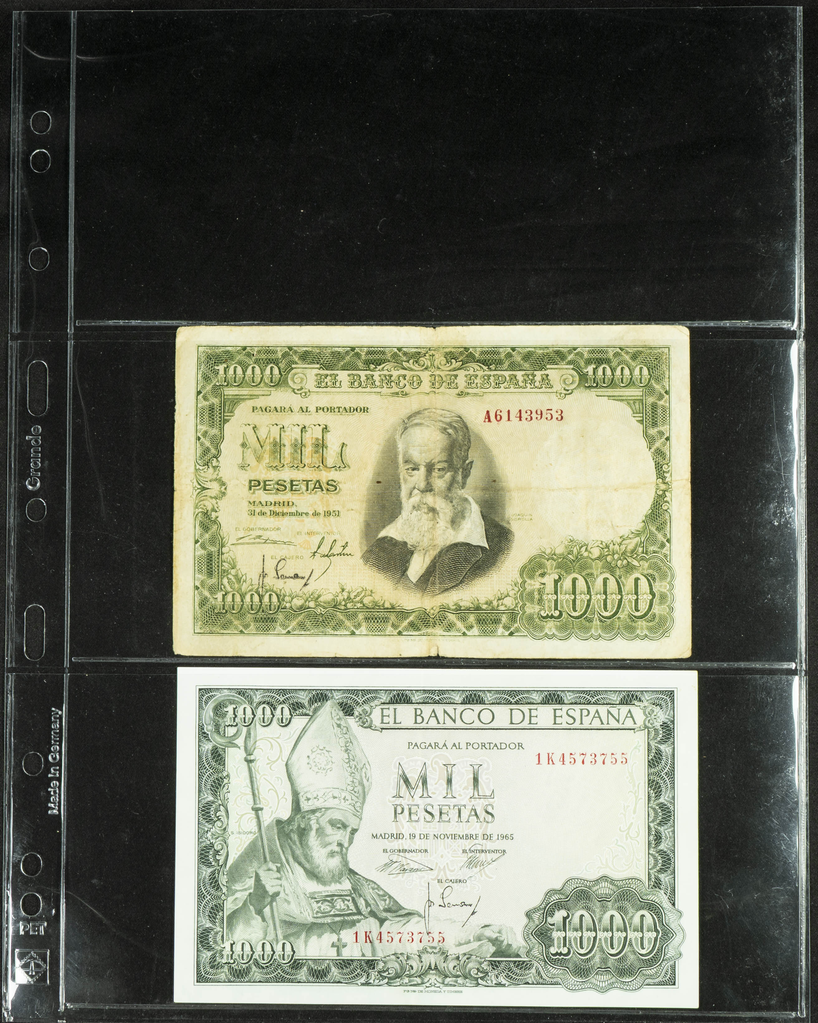 Interesante conjunto de más de 30 billetes del Banco de España de diferentes emisiones y en diversas calidades, incluyendo un billete de Cuba Colonial encapsulado por PMG. A EXAMINAR