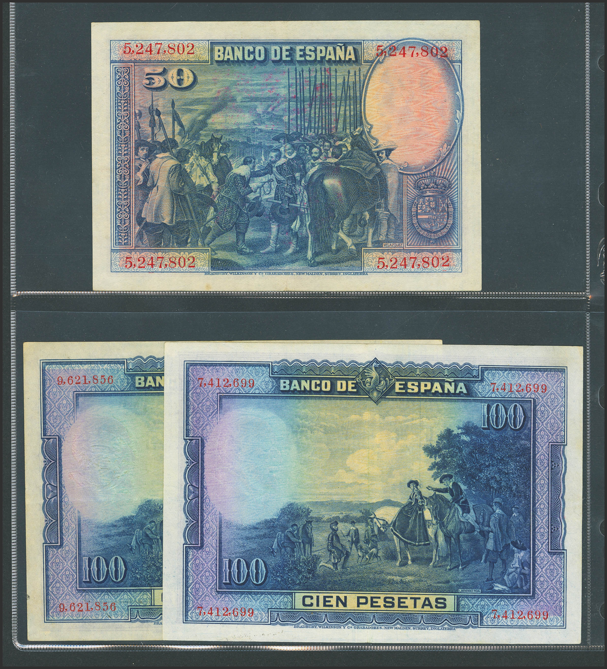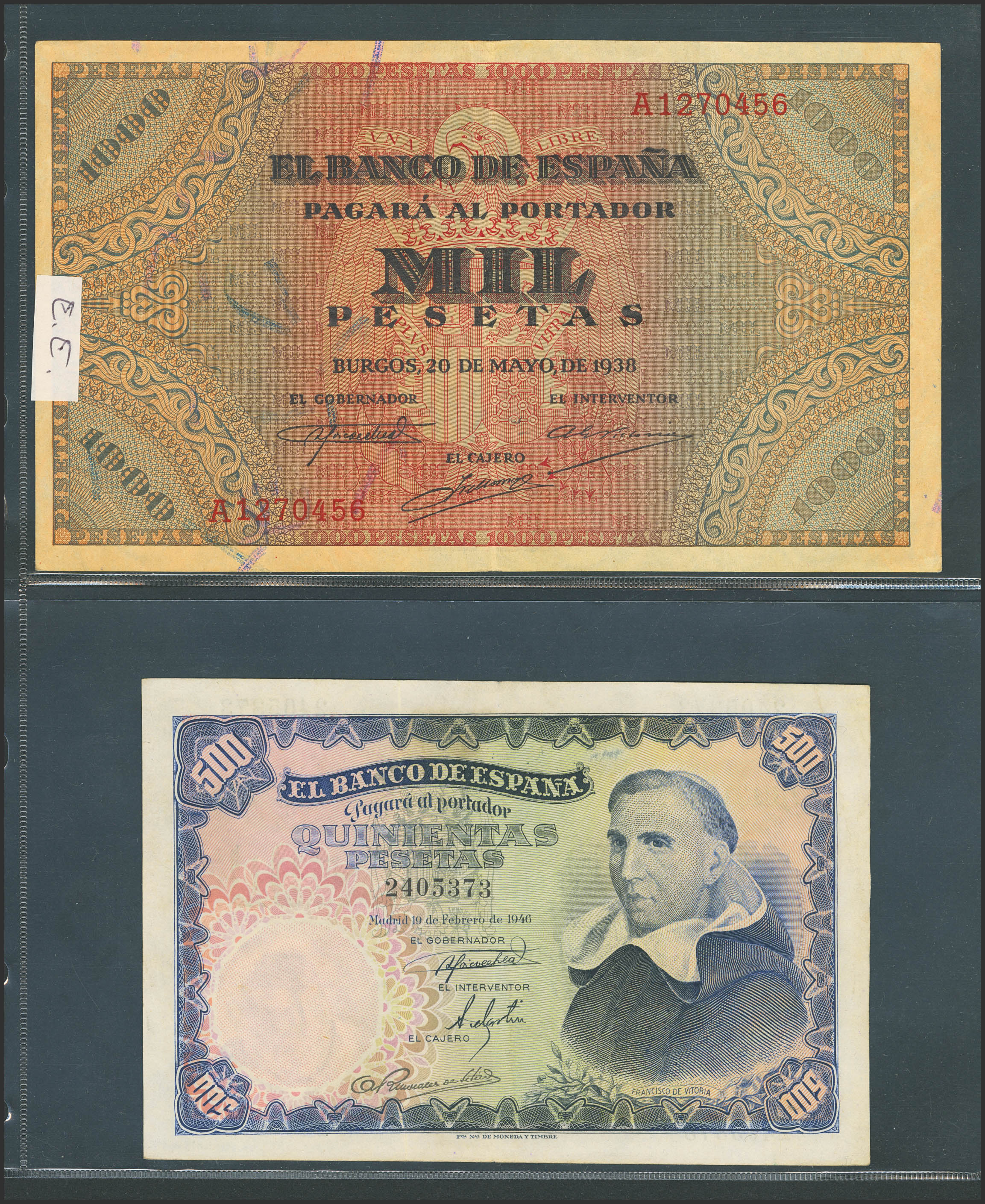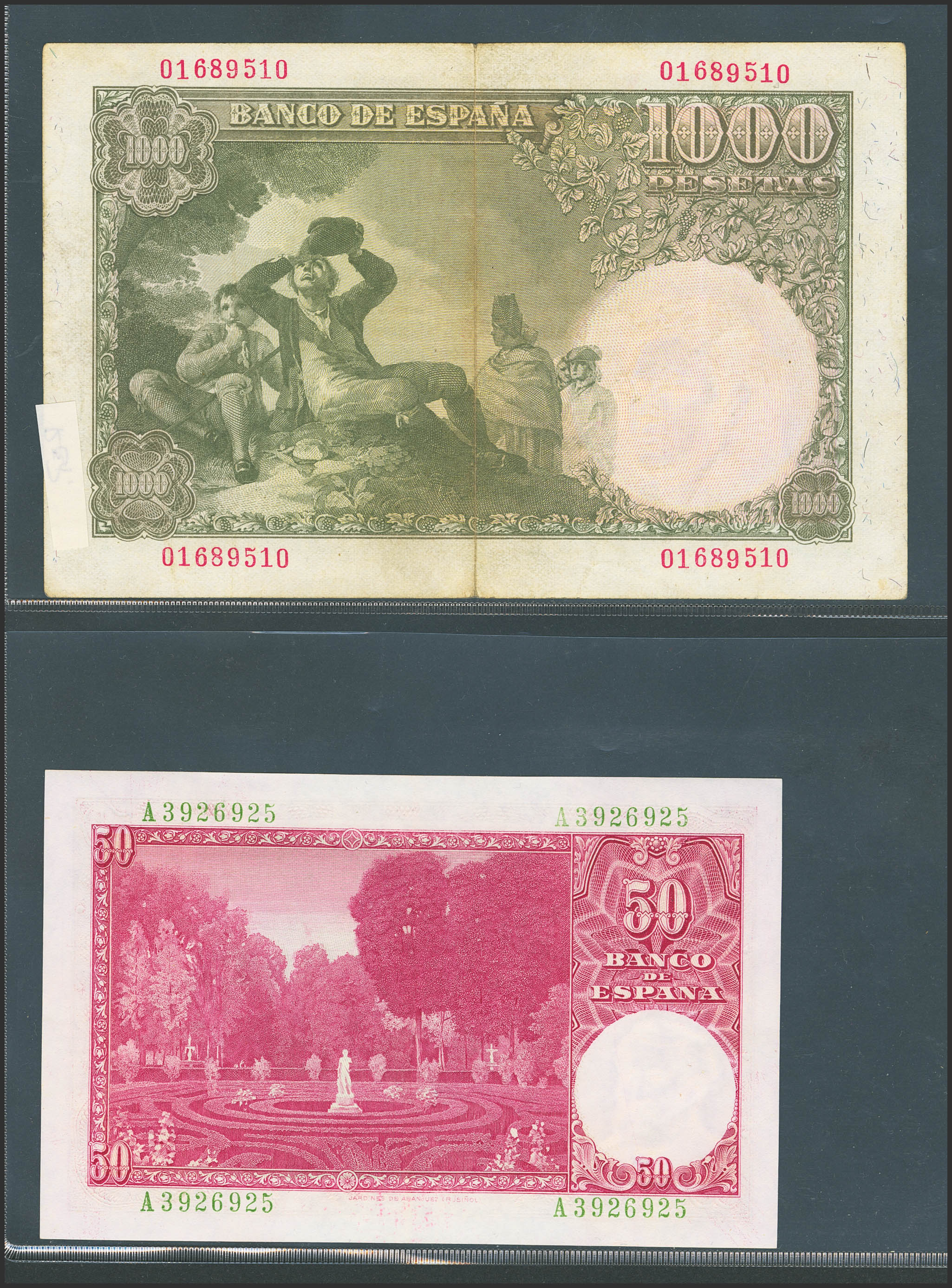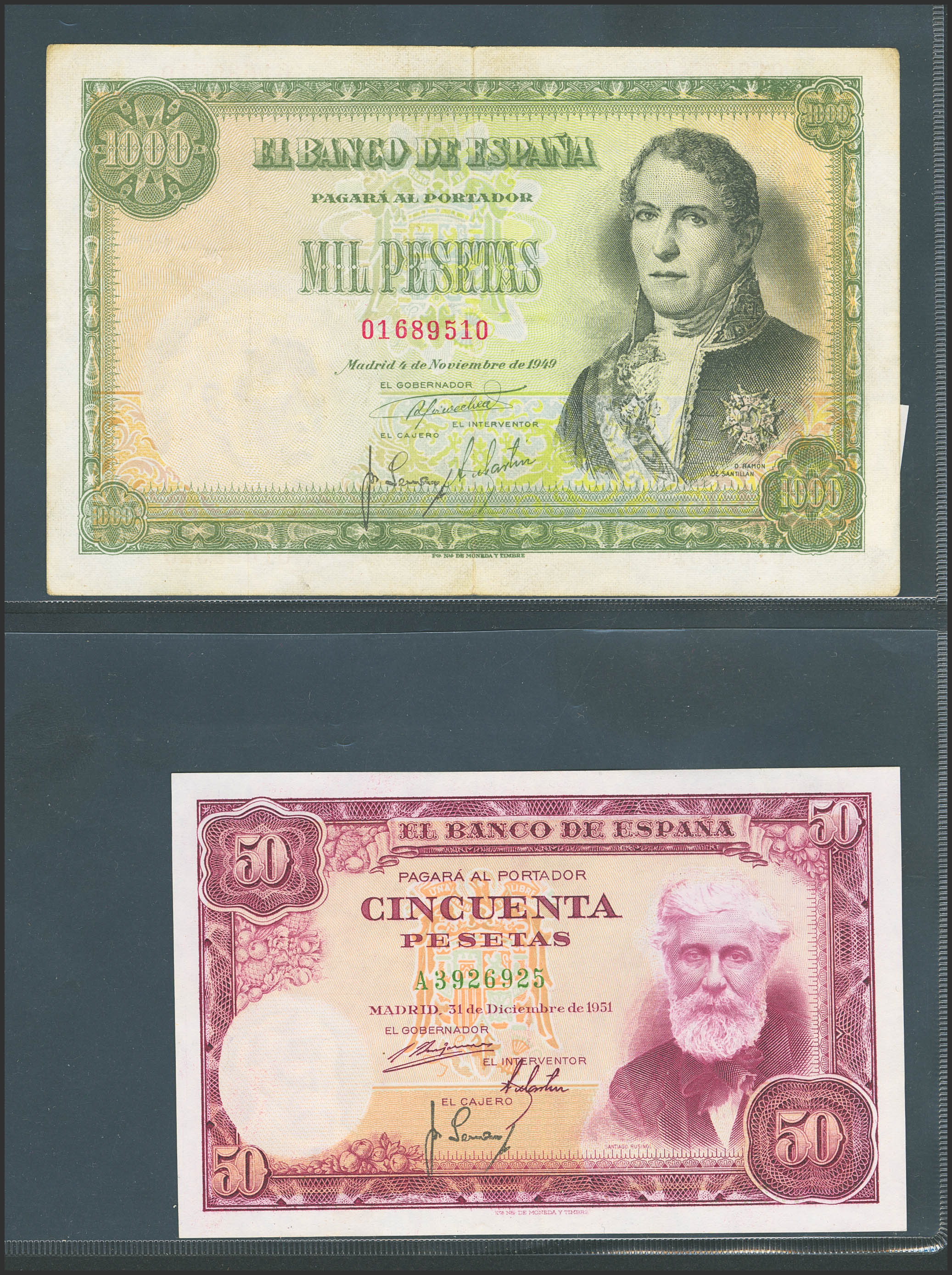 Interantísimo conjunto de más de 85 billetes del Banco de España de diferentes emisiones y en diversas calidades. A EXAMINAR