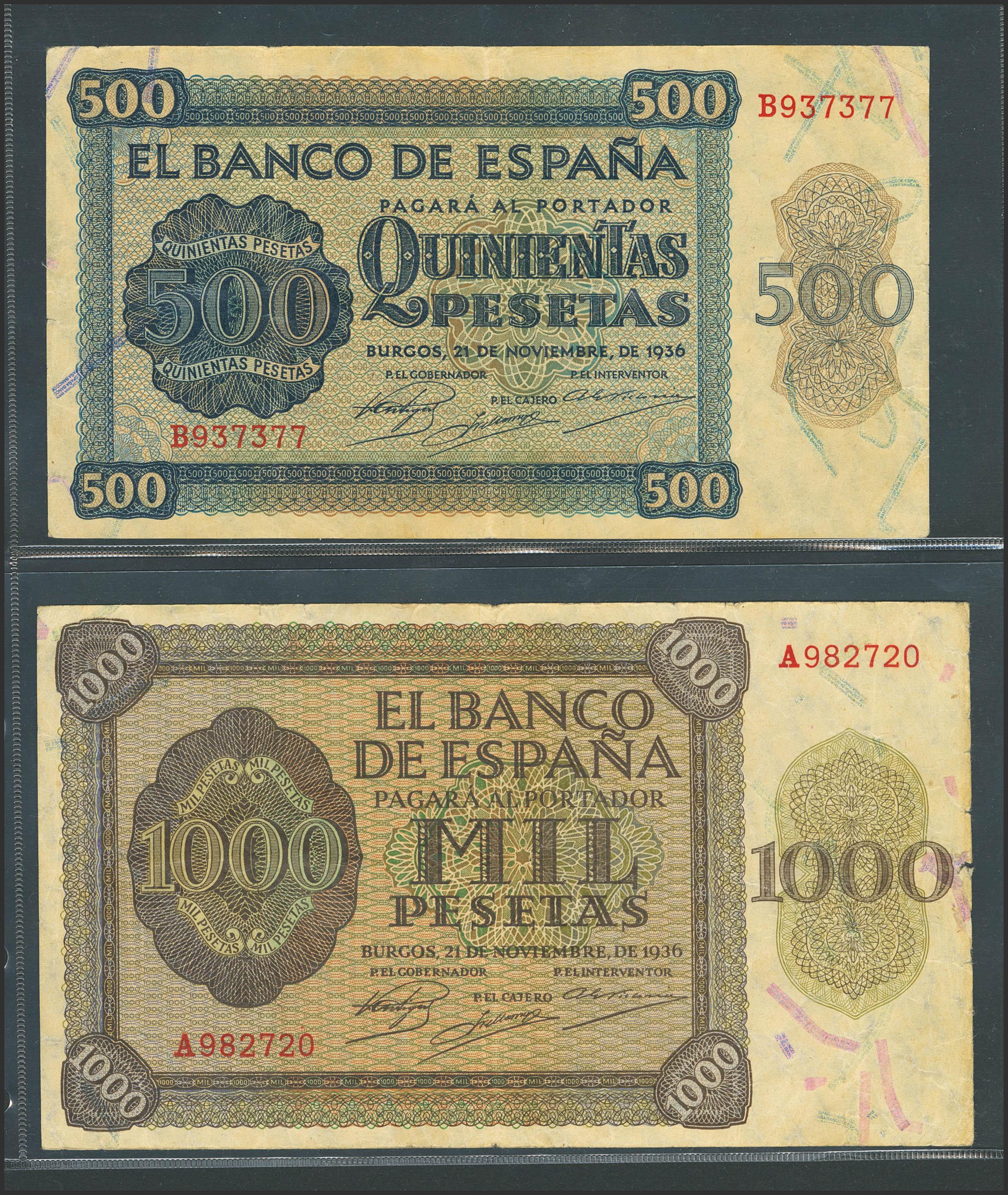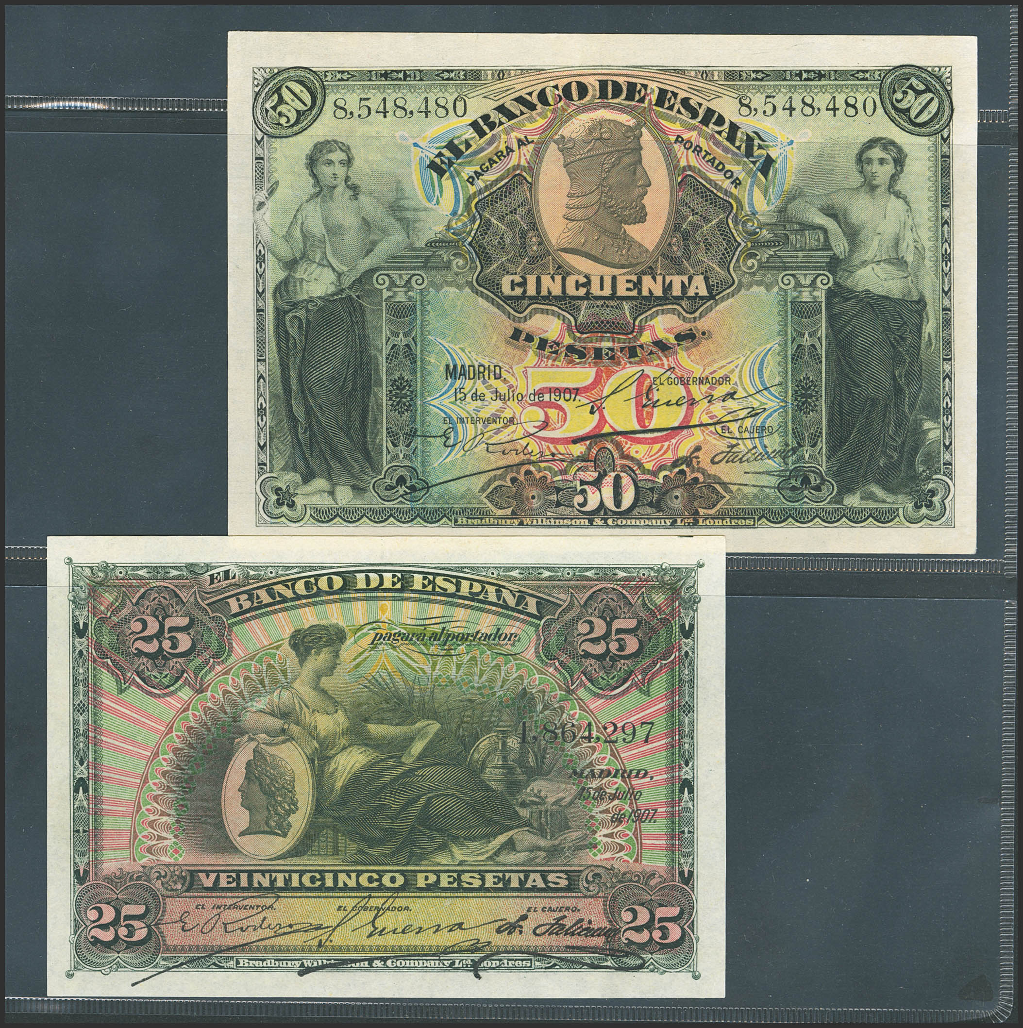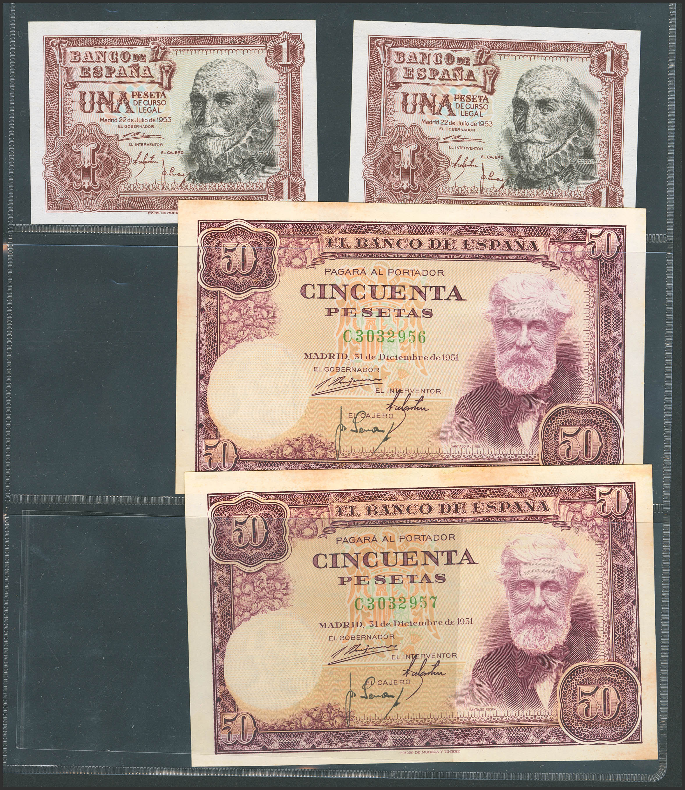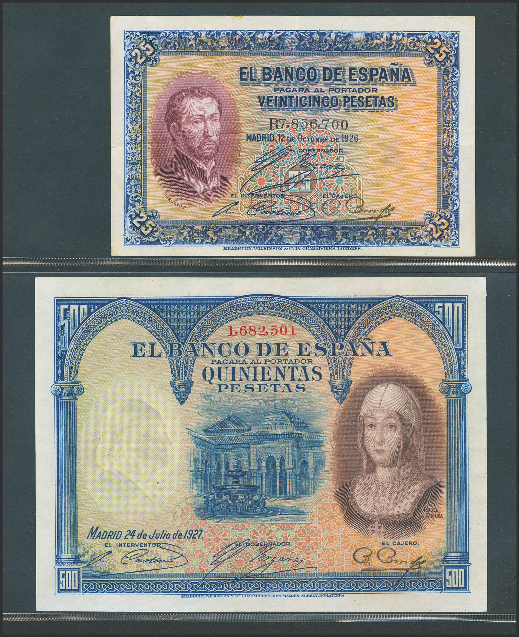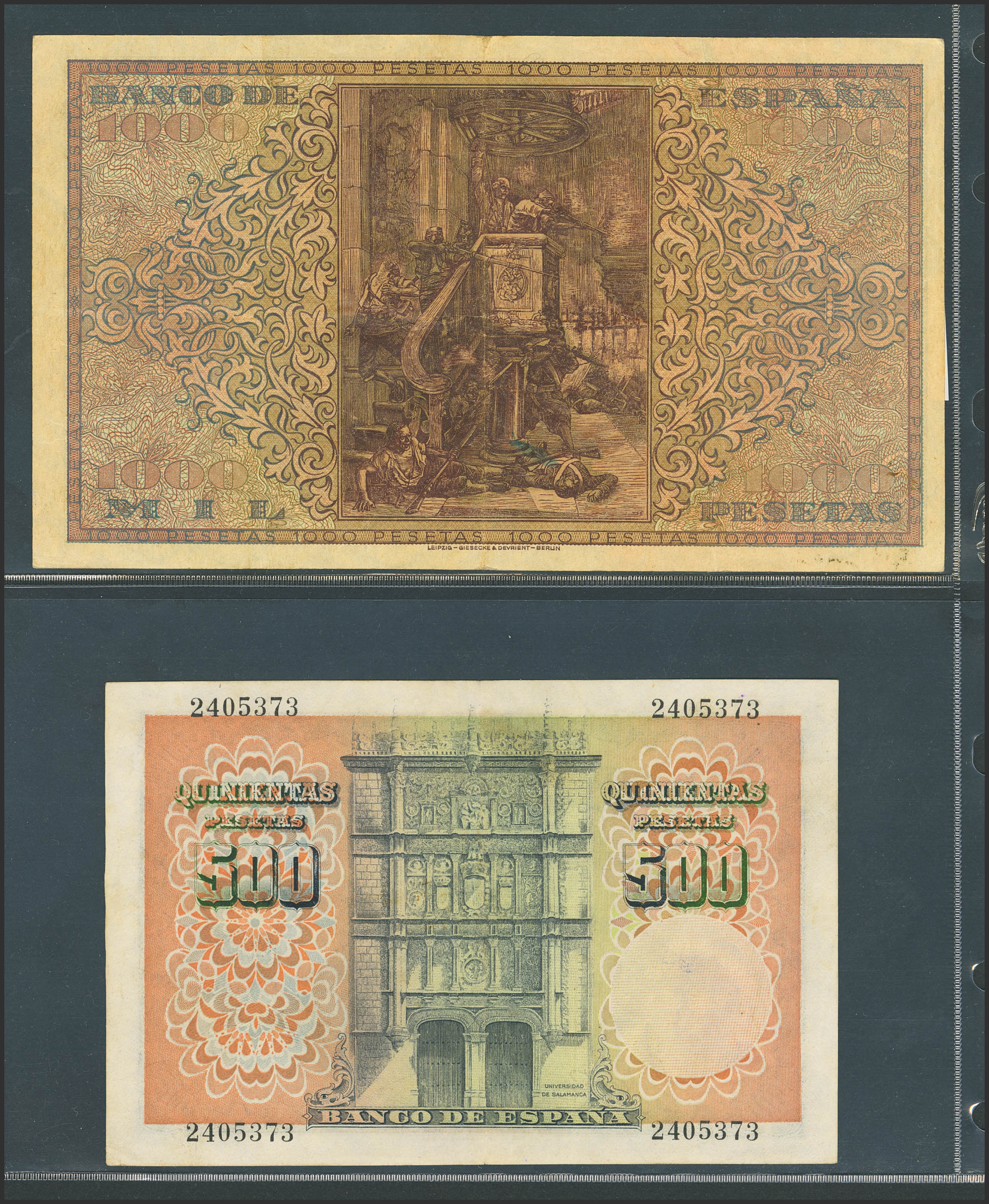 Interantísimo conjunto de más de 85 billetes del Banco de España de diferentes emisiones y en diversas calidades. A EXAMINAR