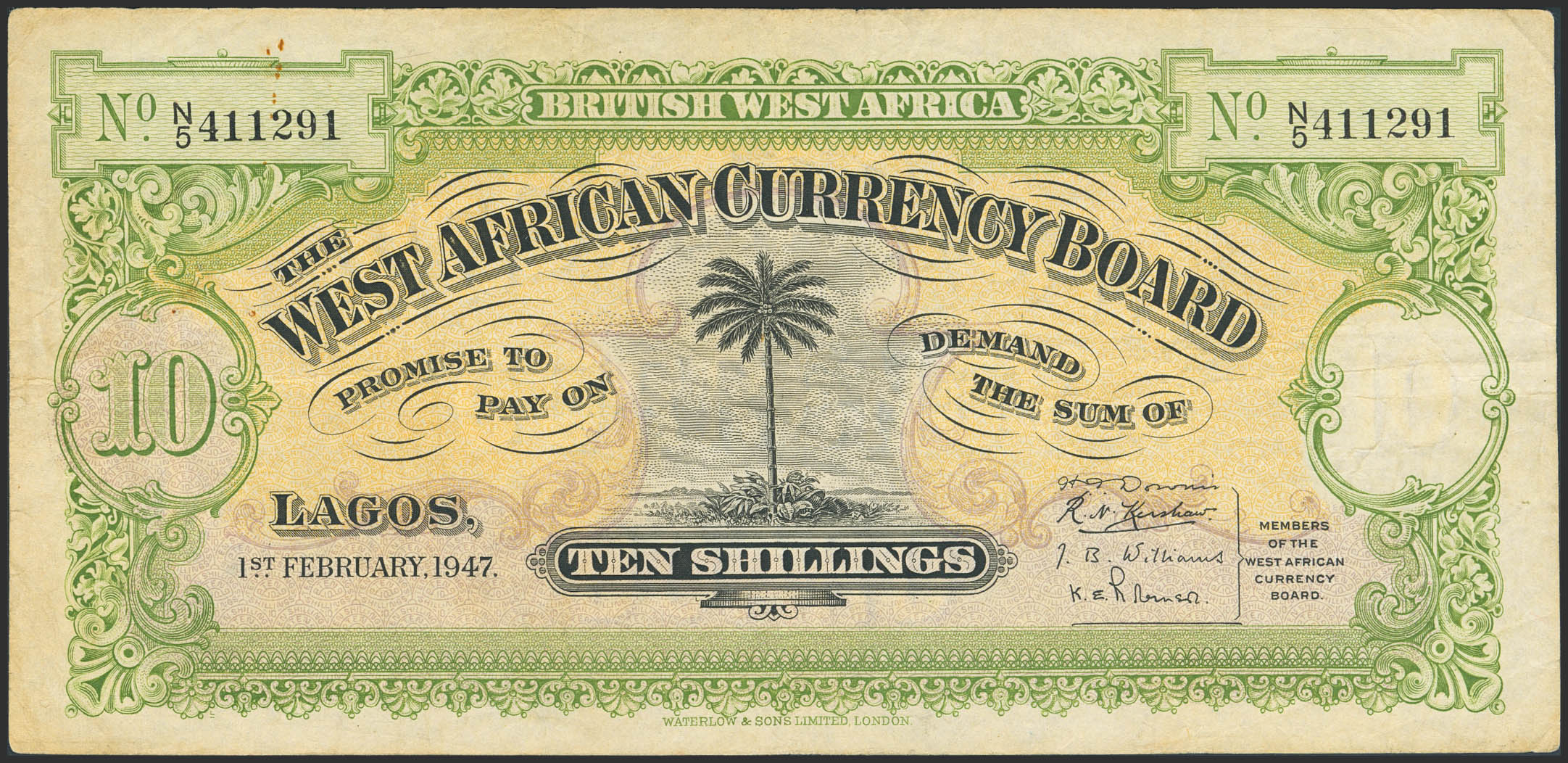 BRITISH WEST AFRICA. 10 Shillings. 1 February 1947. West African Currency Board. (Pick: 7b). Very Fine.