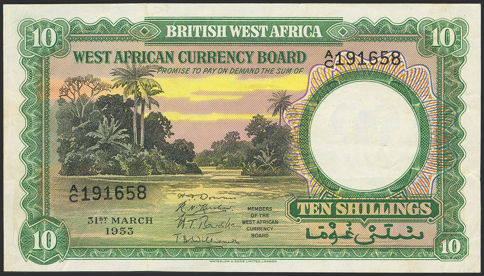 BRITISH WEST AFRICA. 10 Shillings. 31 March 1953. West African Currency Board. (Pick: 9a). More than Very Fine.
