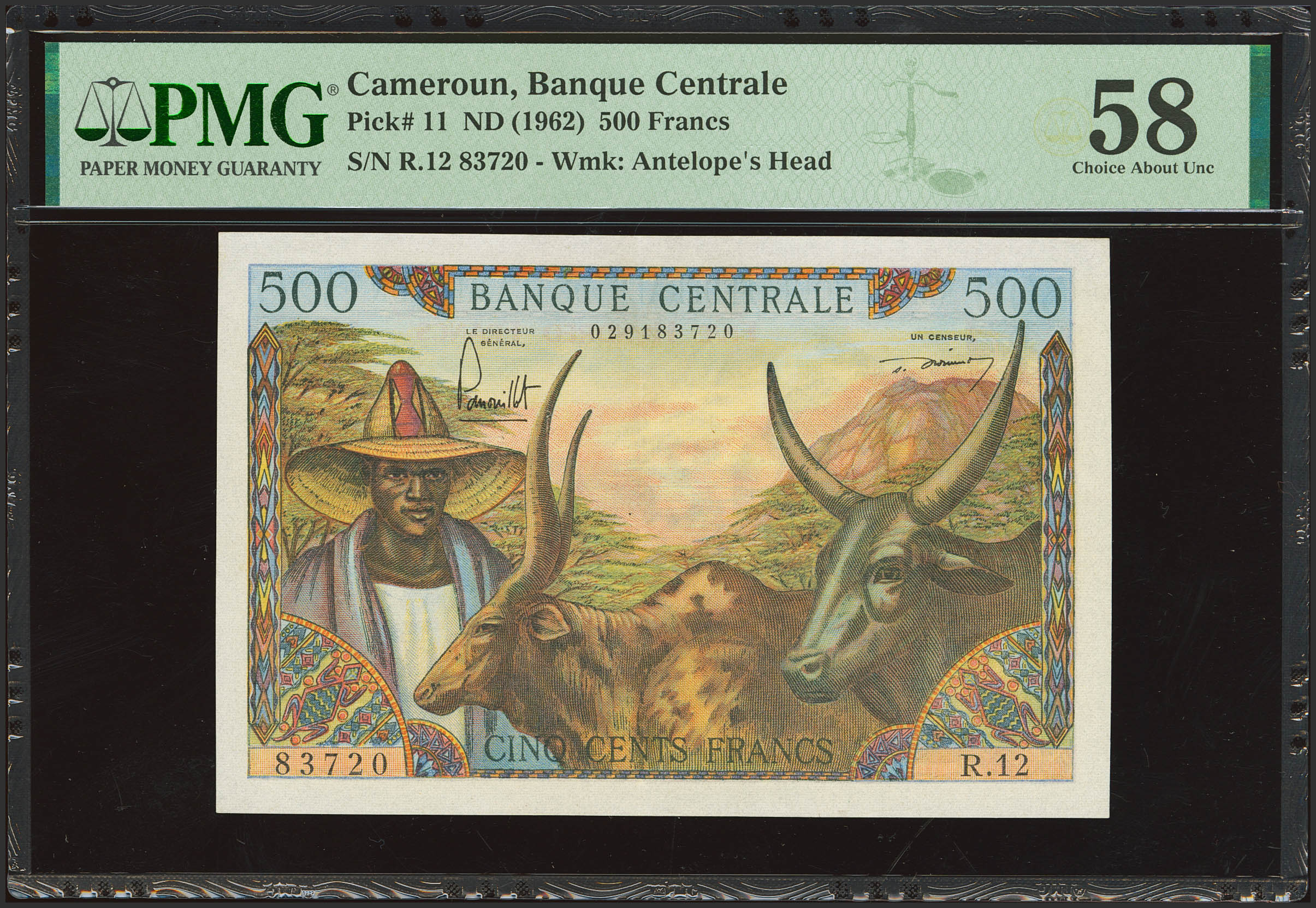 CAMEROON. 500 Francs. (1962ca). Banque Centrale. (Pick: 11). PMG58 (pinholes).
