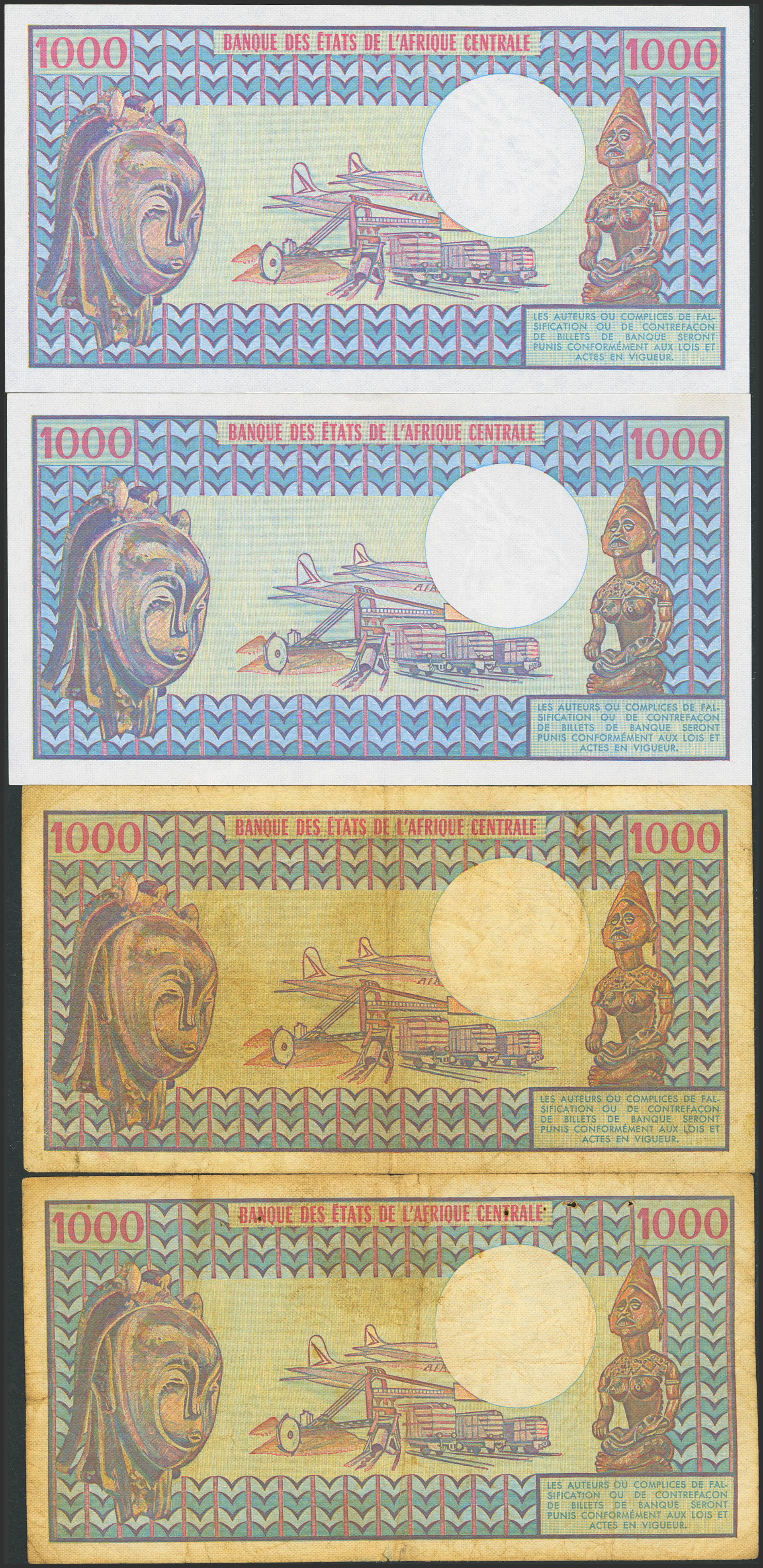 CENTRAL AFRICAN REPUBLIC. Lot of 4 notes of 1000 Francs. 1980 to 1982. Banque des Etats de l'Afrique Centrale. (Pick: 10). Fine, Very Fine, More than Extremely Fine, Less than Uncirculated and Uncirculated.