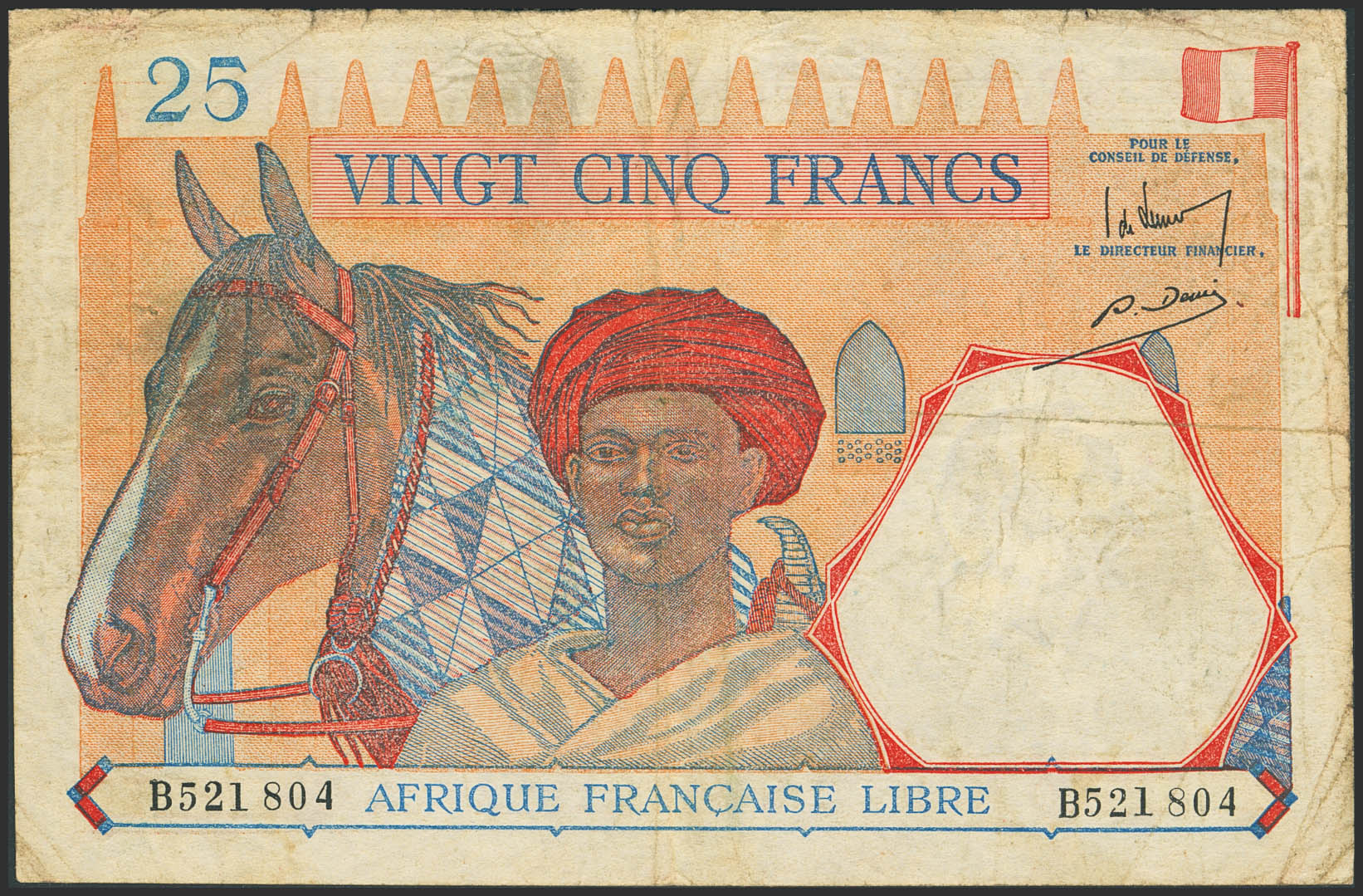 FRENCH EQUATORIAL AFRICA. 25 Francs. (1941ca). Afrique Francaise Libre. (Pick: 7a). Very Fine.