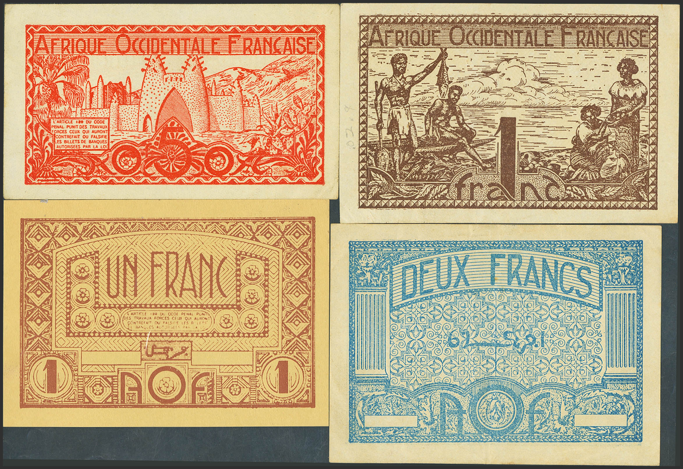 FRENCH WEST AFRICA. Lot of 4 notes from 50 Centimes to 2 Francs. (1944ca). Afrique Occidentale Francaise. (Pick: 33a, 34a, 34b, 35). Almost Uncirculated (3) and Uncirculated (1).