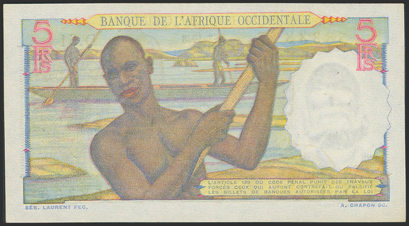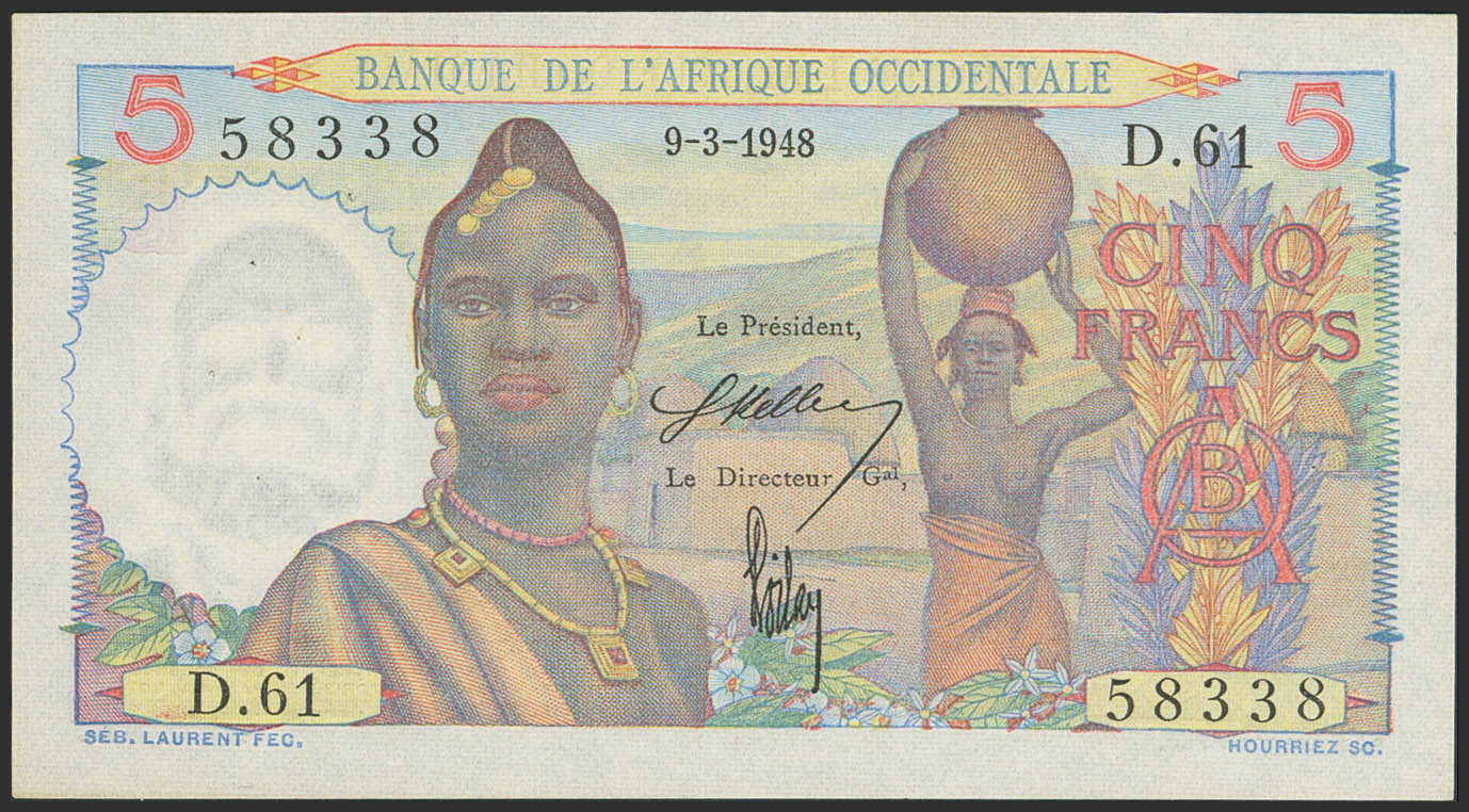 FRENCH WEST AFRICA. 5 Francs. 9 March 1948. Banque de l'Afrique Occidentale. (Pick: 36). Pinholes. Less than Uncirculated.