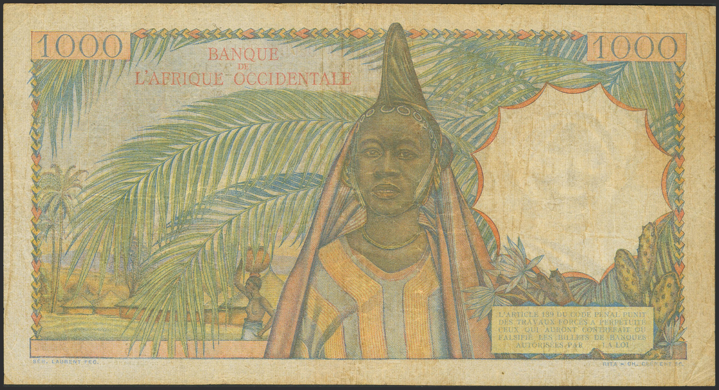 FRENCH WEST AFRICA. 1000 Francs. 2 October 1951. Banque de l'Afrique Occidentale. Signatures of Coppett and Poilay. (Pick: 42). Fine.