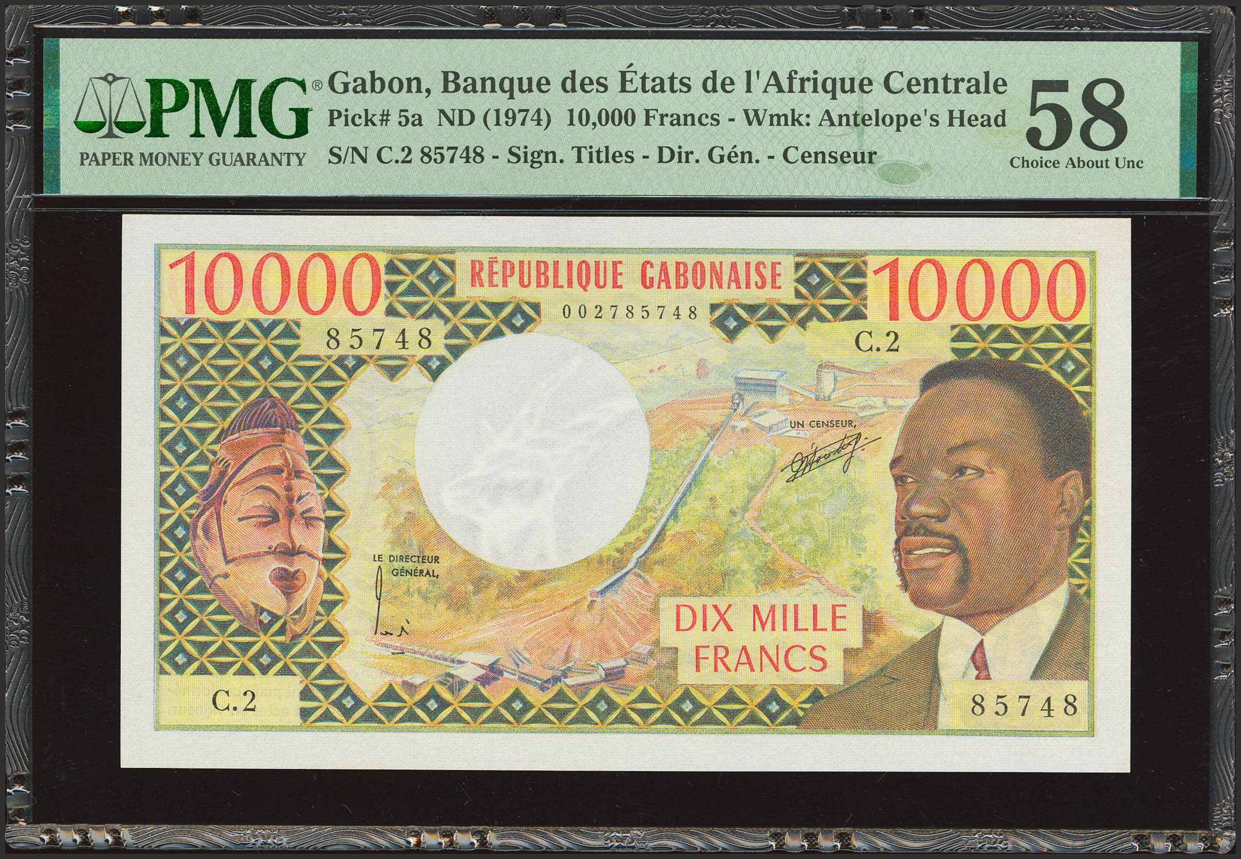 GABON. 10000 Francs. (1974ca). Banque des Etats de l'Afrique Centrale. (Pick: 5a). PMG58.