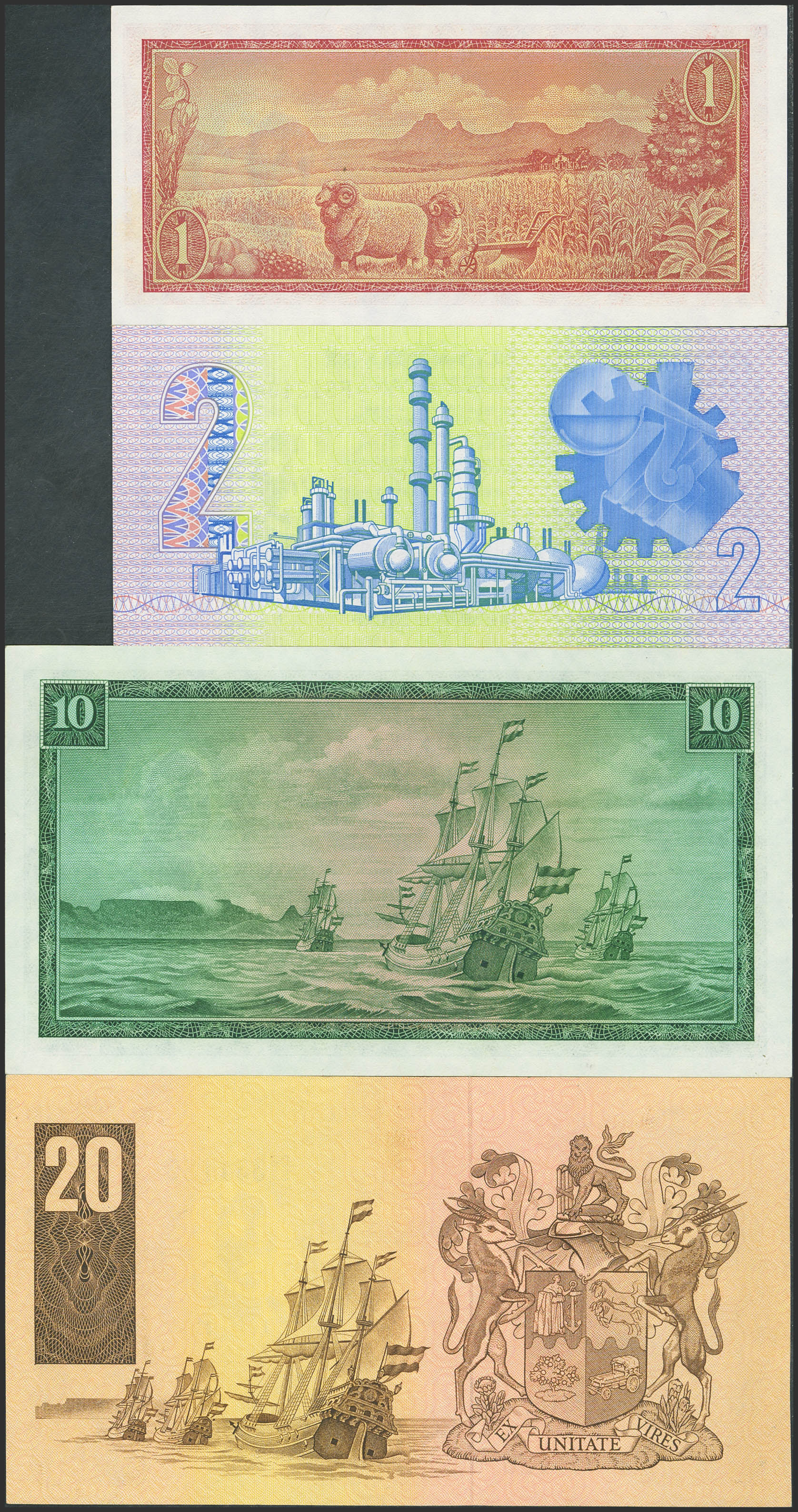 SOUTH AFRICA. Lot of 4 notes of 1, 2, 10 and 20 Rand. (1966ca) to (1974ca). Reserve Bank. (Pick: 114b, 115b, 118d, 121c). Uncirculated.