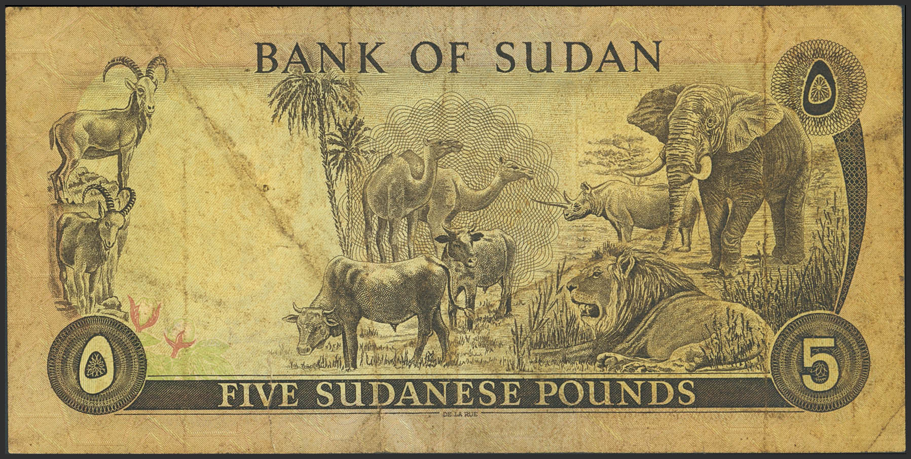 SUDAN. 5 Sudanese Pounds. 1980. Bank of Sudan. (Pick: 14c). Tear. More than Fine.