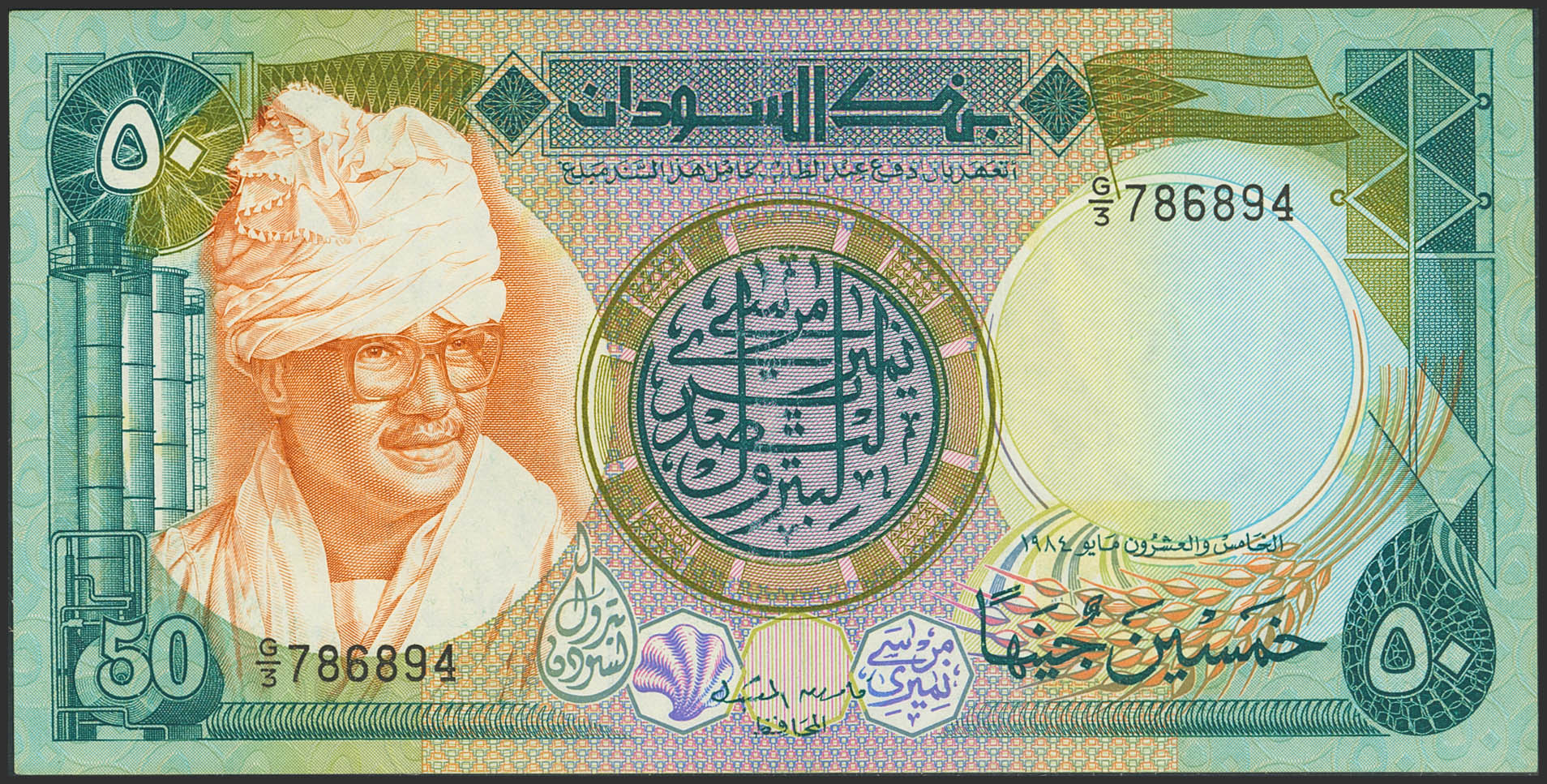 SUDAN. 50 Sudanese Pounds. 1984. Bank of Sudan. (Pick: 29a). More than Extremely Fine.