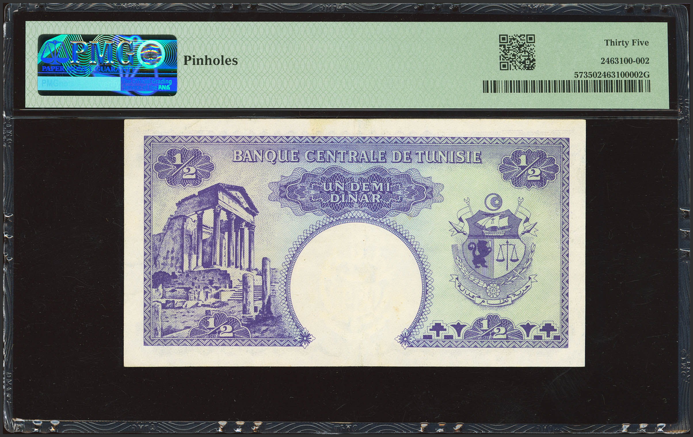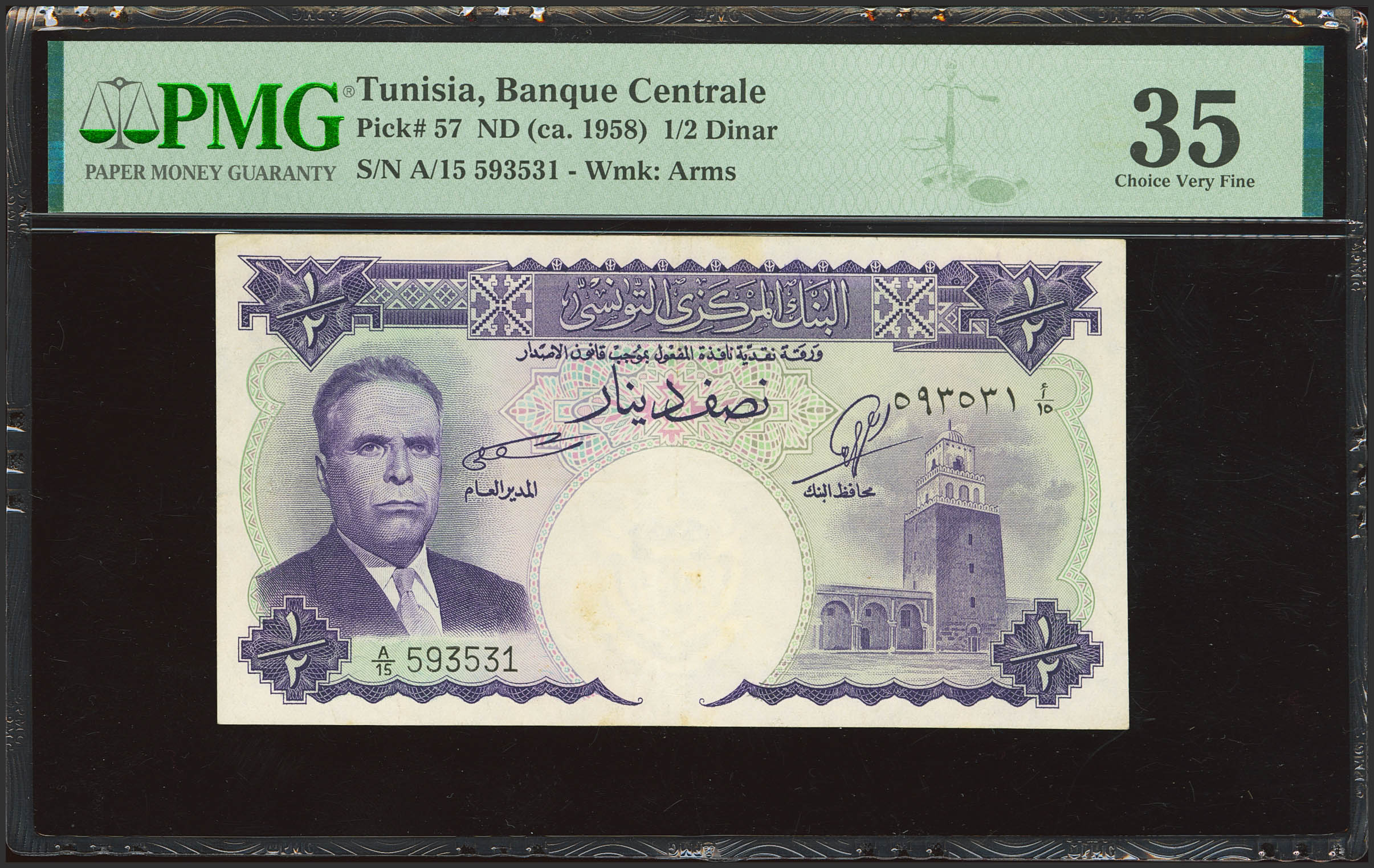 TUNISIA. ½ Dinar. (1958ca). Banque Centrale de Tunisie. (Pick: 57). PMG35 (pinholes).