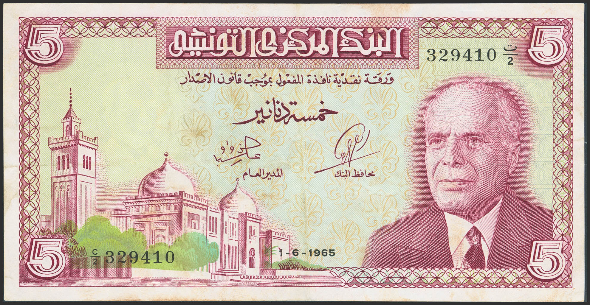 TUNISIA. 5 Dinars. 1 June 1965. Banque Centrale de Tunisie. (Pick: 64a). More than Extremely Fine.