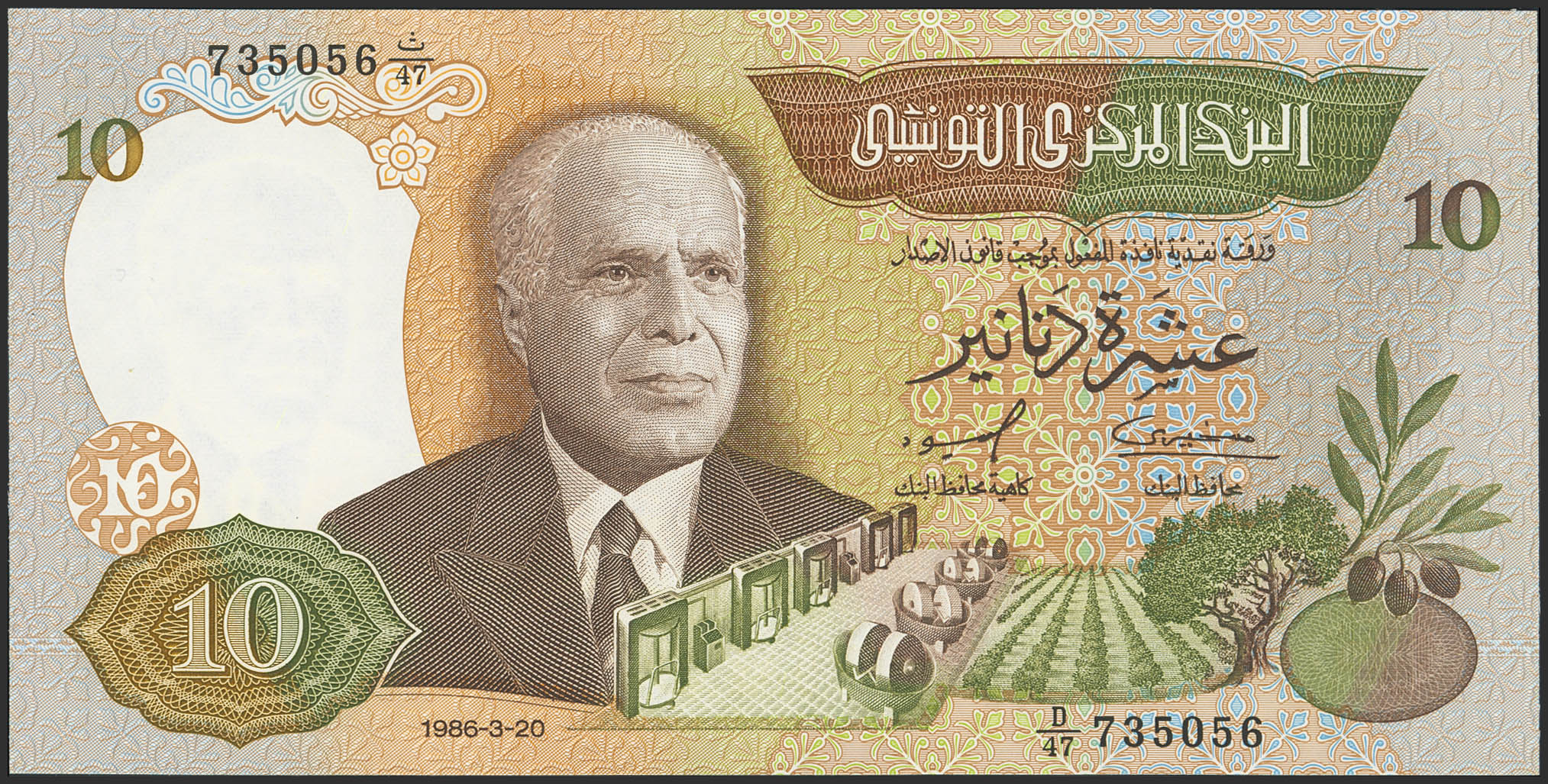 TUNISIA. 10 Dinars. 20 March 1986. Banque Centrale de Tunisie. (Pick: 84). Uncirculated.