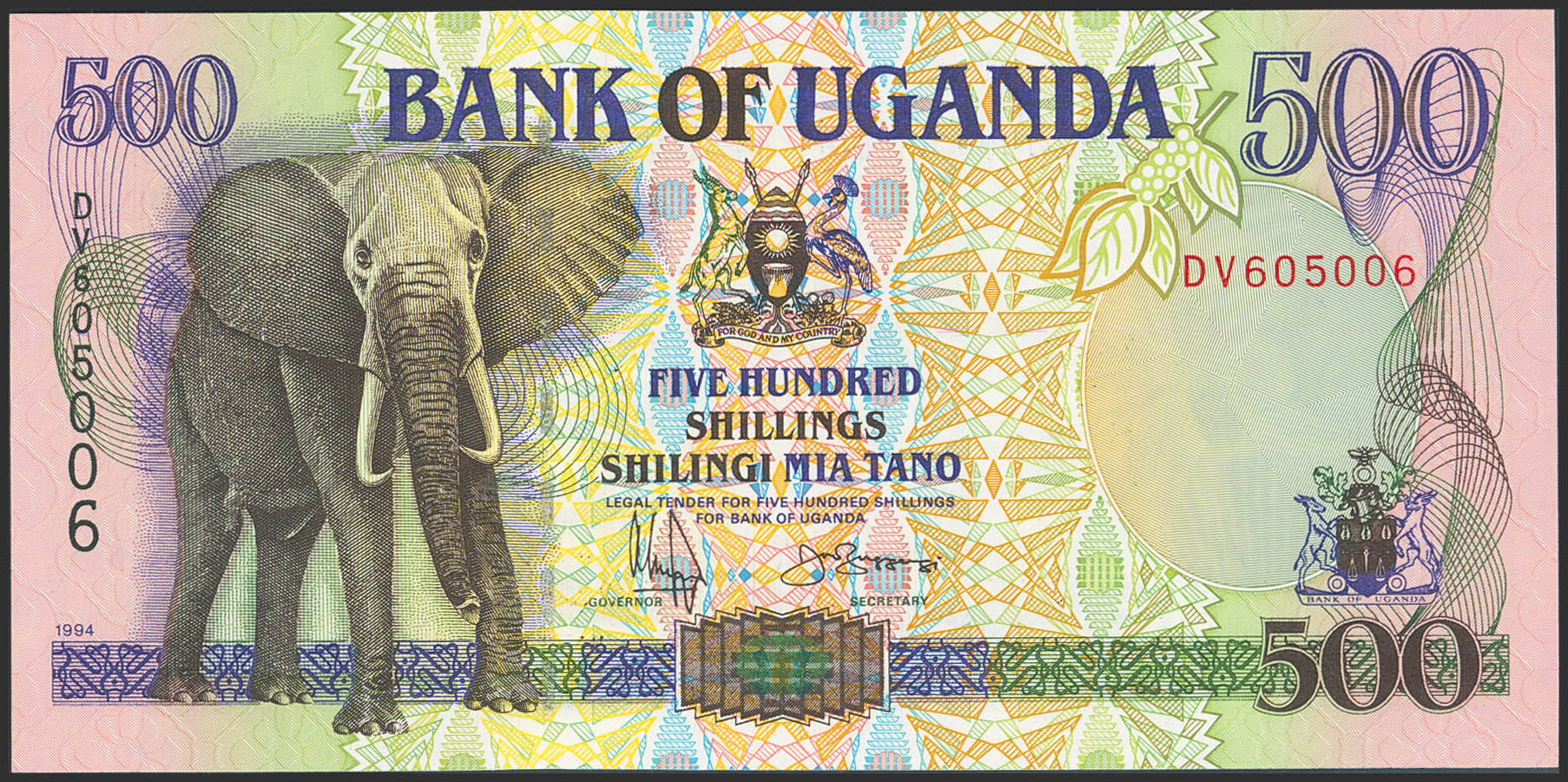 UGANDA. 500 Shillings. 1994. Bank of Uganda. (Pick: 35a). Uncirculated.
