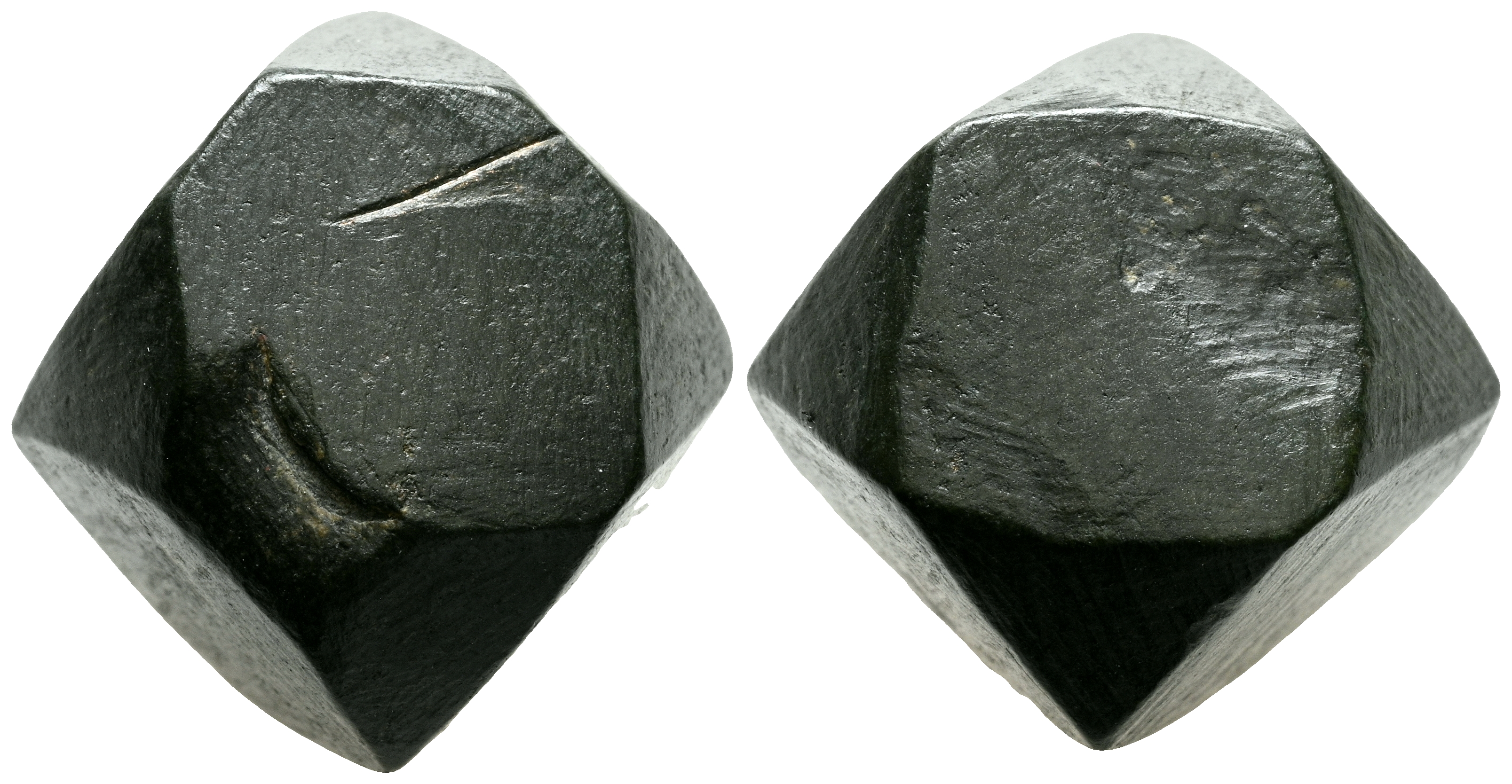 Ponderal de 1/2 uncia. (Ae. 11,79g/12mm). Siglos V-VIII. Forma poligonal de 14 caras. MBC+. Interesante ejemplar.