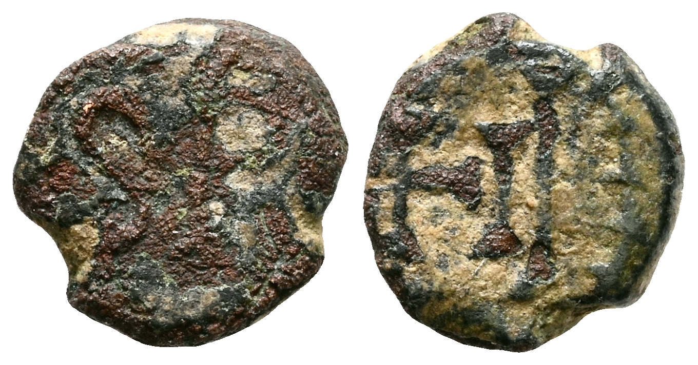 VISIGODOS. Nummus. (Ae. 0,35/7mm). Segunda mitad del Siglo VII d.C. Ispali (Sevilla). (Cru. Grupo A, tipo 1). Anv: SP. Rev: Cruz latina sobre grada doble. BC-. Escasa.