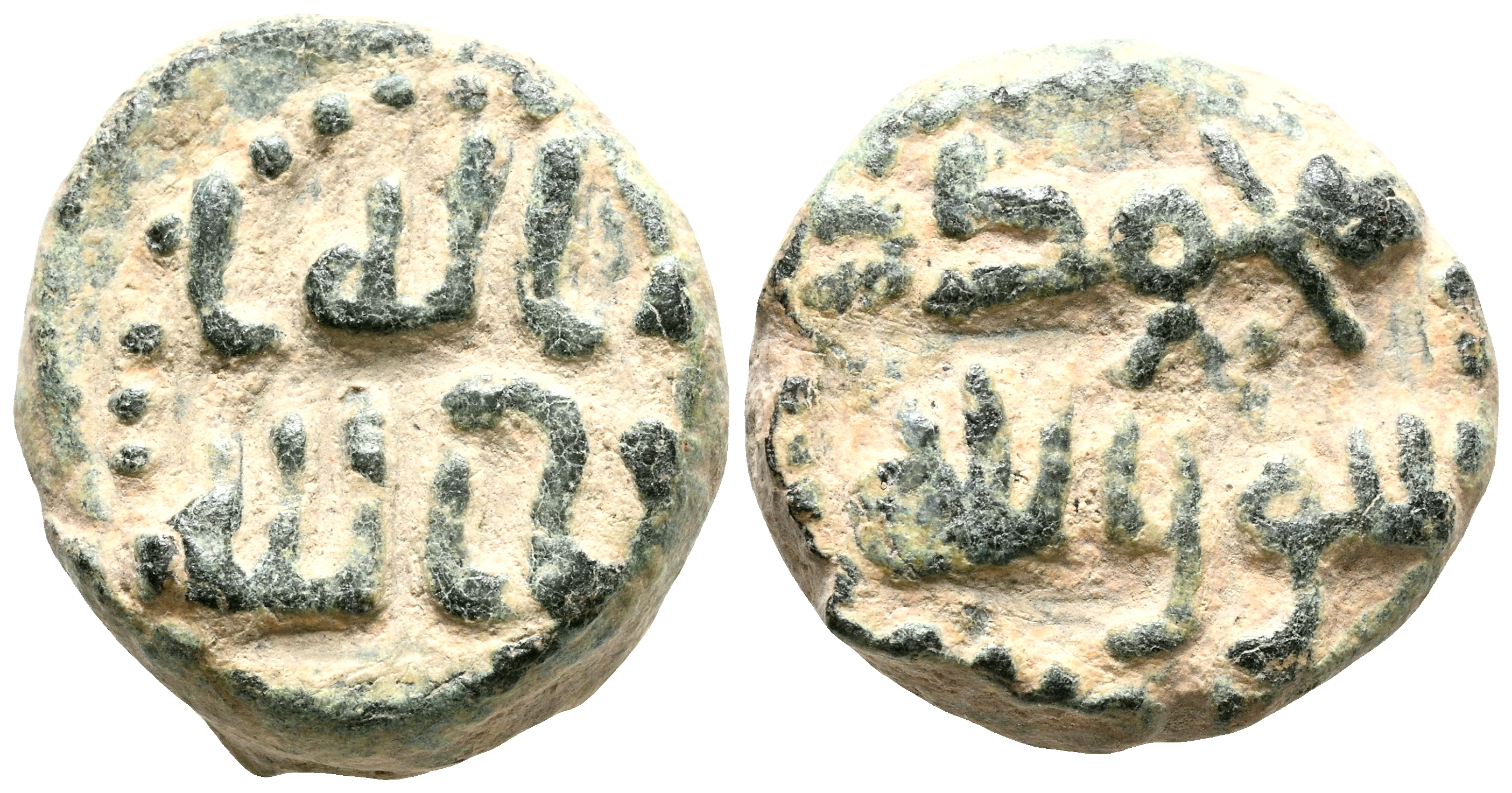 EMIRATO DEPENDIENTE DE CÓRDOBA, PERIODO DE GOBERNADORES. Anónimo. Felús. (Ae. 3,76g/14mm). S/D. (Frochoso II-c). Anv: لاالله/ لااله ا. Rev: رسواالله / محمد, con adorno de forma triangular. MBC+. Bello ejemplar.