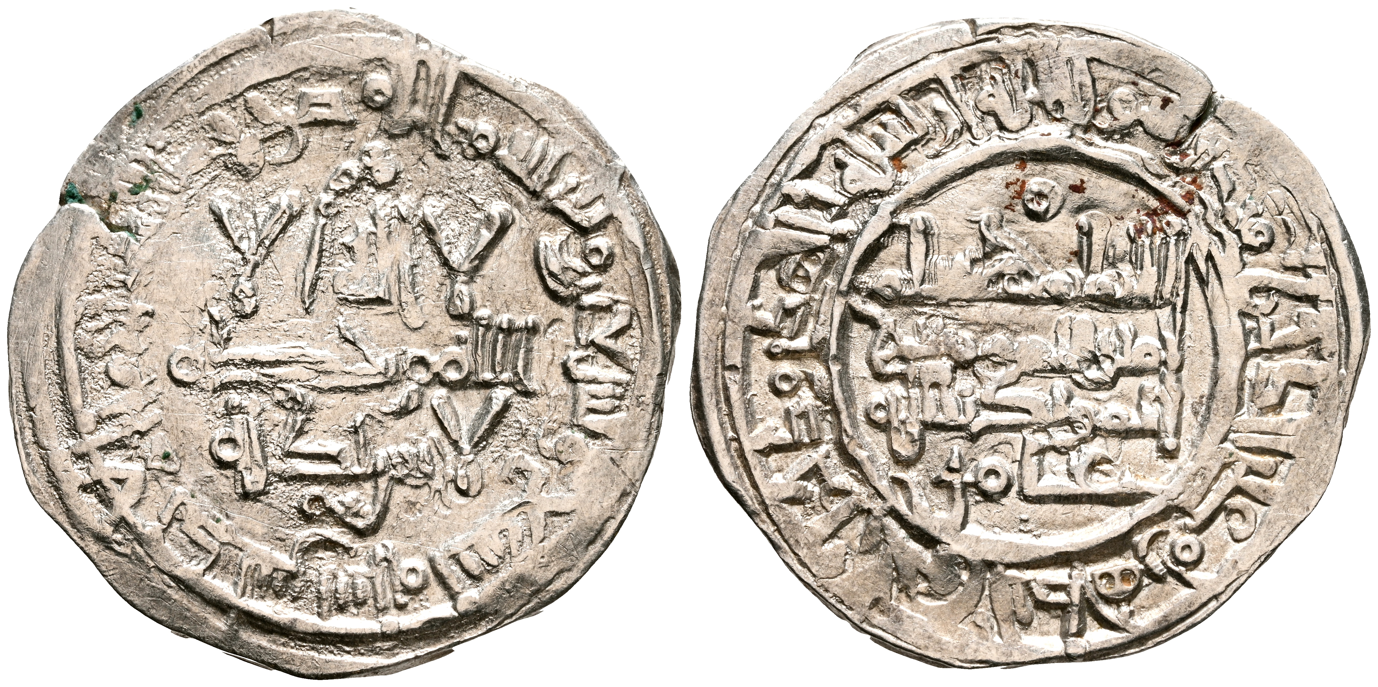 CALIFATO DE CORDOBA, Hisham II. Dirham. (Ar. 3,52g/24mm). 379H. al-Ándalus / الاندلس. (Vives 510; Frochoso 379.110). Citando a 'Āmir / عامر en IIA. MBC+.