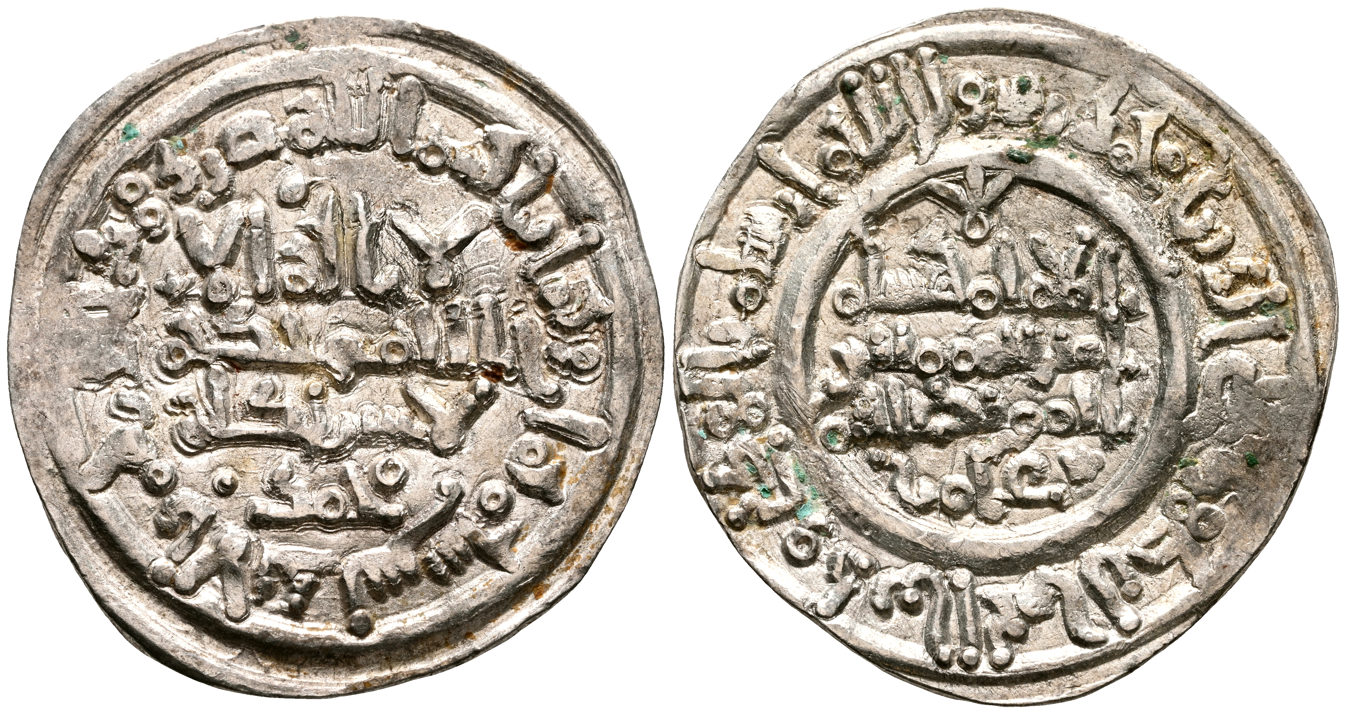 CALIFATO DE CORDOBA, Hisham II. Dirham. (Ar. 3,25g/25mm). 388H. al-Ándalus / الاندلس. (Vives 538; Frochoso no cita esta combinación de adornos). Citando a Muhammad / محمد en IA. y 'Āmir / عامر en IIA. MBC+.