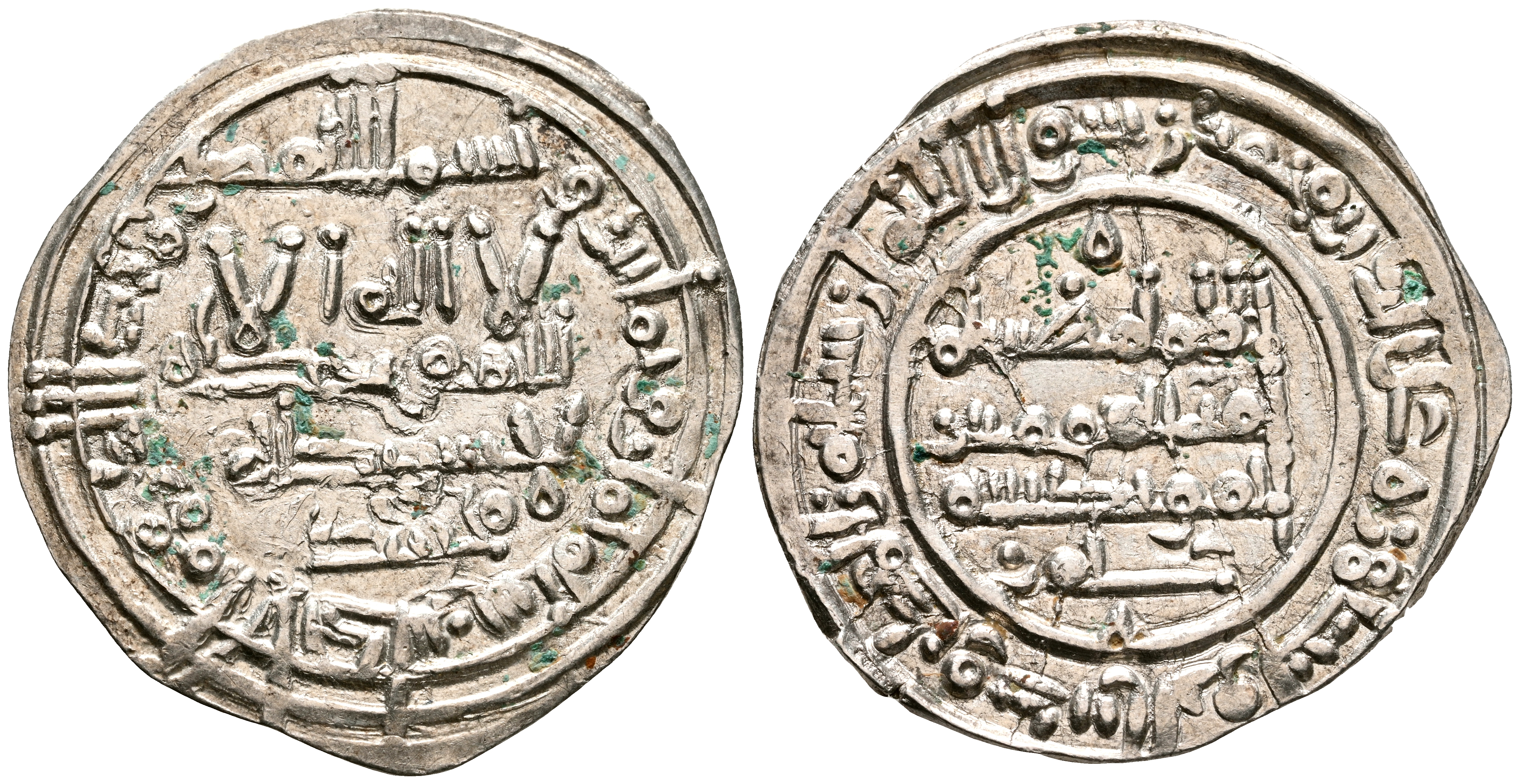 CALIFATO DE CORDOBA, Hisham II. Dirham. (Ar. 3,17g/25mm). 388H. al-Ándalus / الاندلس. (Vives 538; Frochoso 388.70). Citando a Muhammad / محمد en IA. y 'Āmir / عامر en IIA. EBC-. Restos de brillo original.