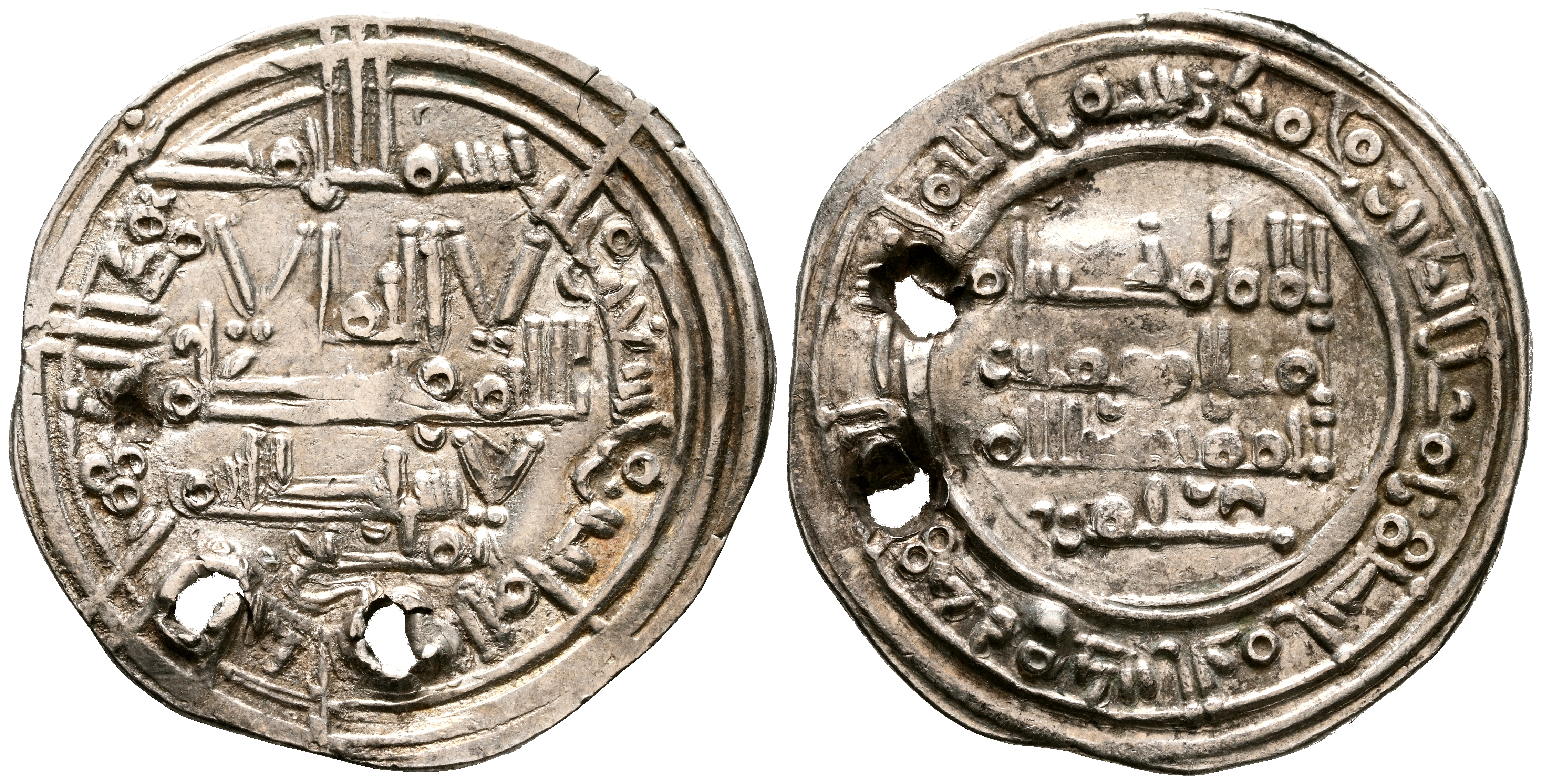 CALIFATO DE CORDOBA, Hisham II. Dirham. (Ar. 2,93g/23mm). 392H. al-Ándalus / الاندلس. (Vives 569; Frochoso 392.101). Citando a Tamliŷ / تمليح en IA. y 'Āmir / عامر en IIA. MBC+. Dos perforaciones.