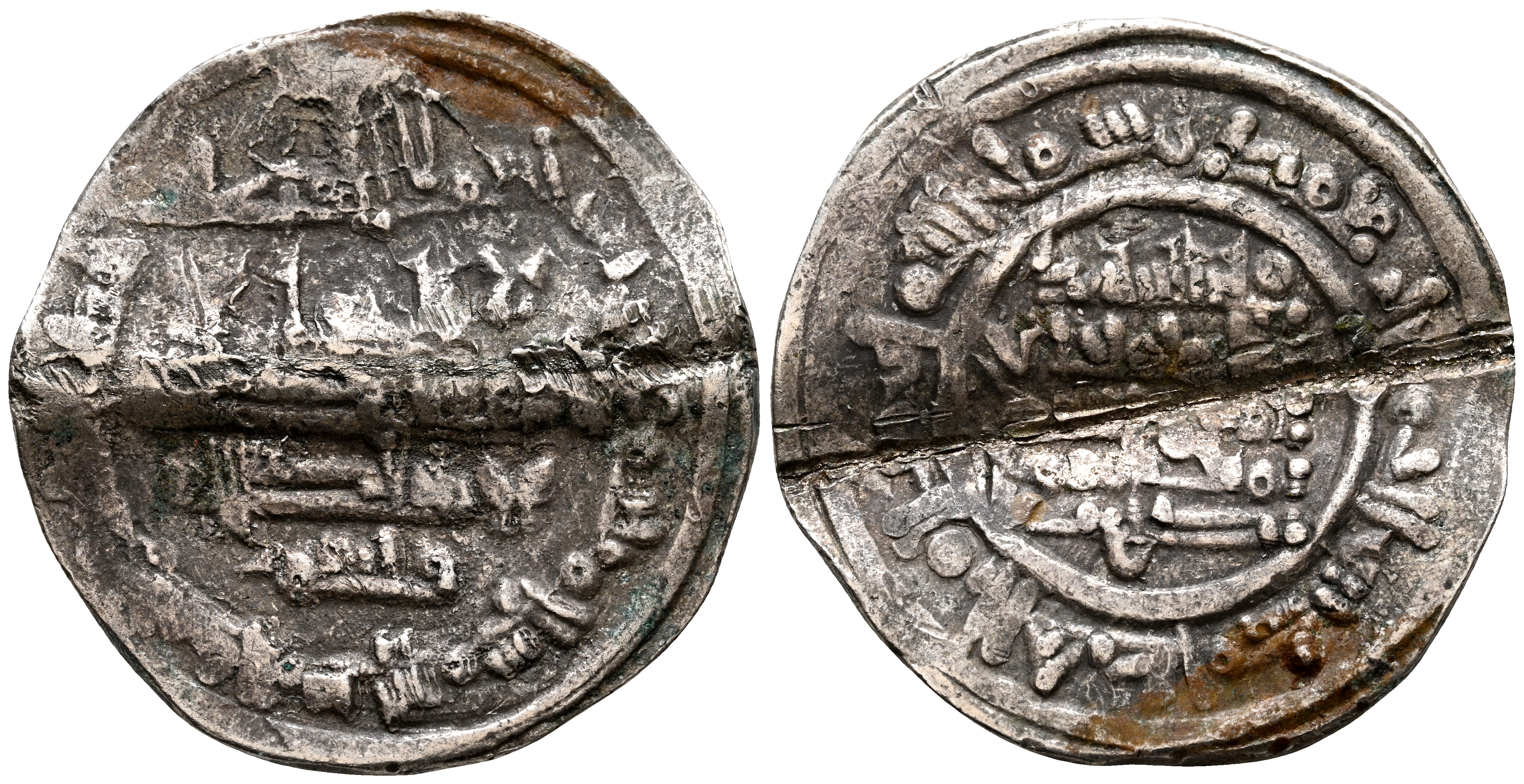 TAIFAS DEL CALIFATO, HAMMUDIES. Yahya Ibn Ali, al-Mu'tali. Dirham. (Ar. 3,65g/23mm). 423H. Madinat Sabta (Ceuta) / مدينة سبتة. (Vives 770; Prieto 84f; Ariza Ya10.6). Citando Qāsim / قاسم en IA. y al príncipe heredero Idris / إدريس / ولى العهد en IIA. MBC-. Marca transversal por doblez.