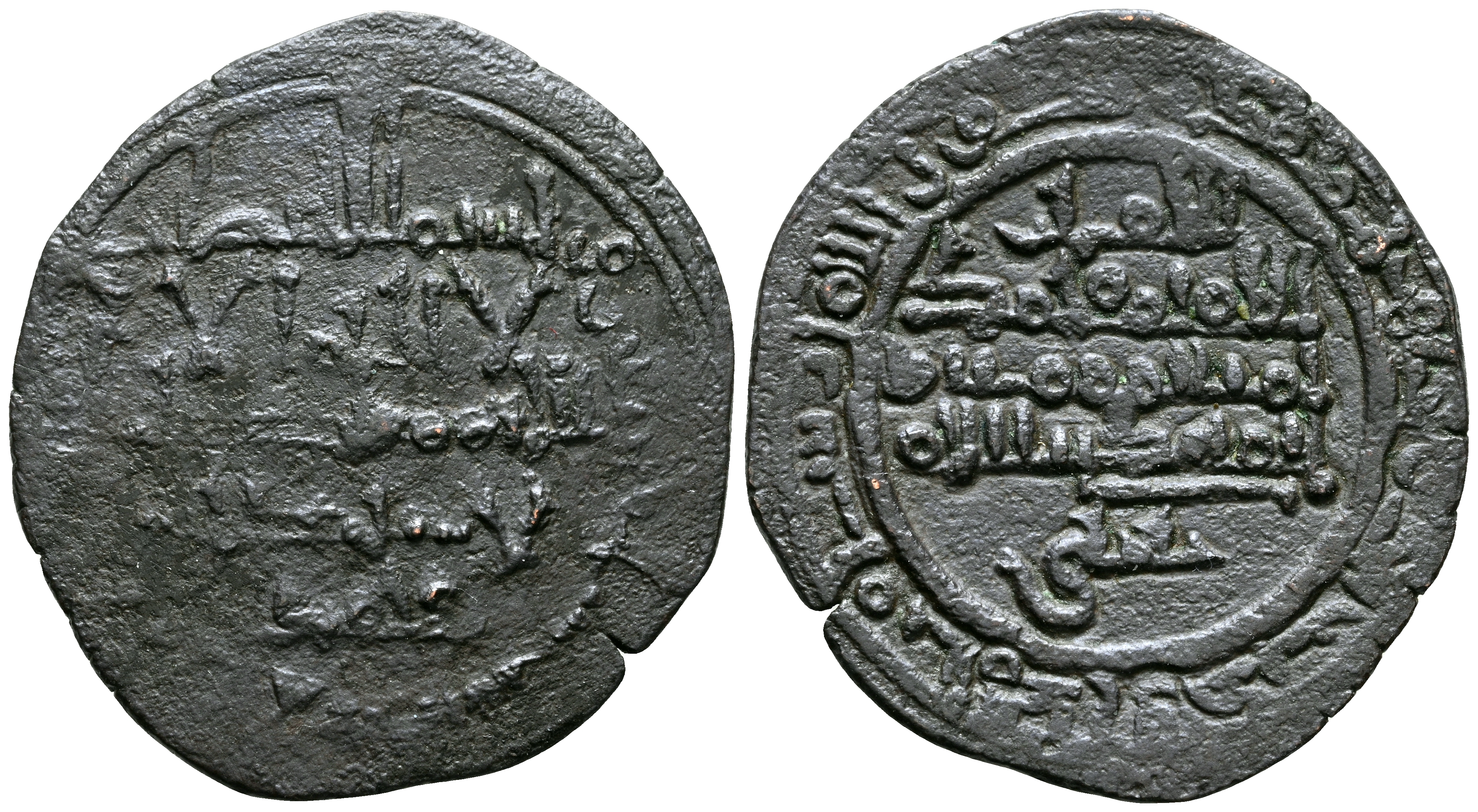 TAIFAS DEL CALIFATO, MÁLAGA (Hammudíes). Muhammad Ibn Idris, Al-Mahdi. Dirham. (Ve. 2,58g/23mm). 440H. al-Ándalus / الاندلس. (Vives 859; Prieto 104a; Ariza Mu4.1). Citando a محمد (Mohammad) en IA. y al يحيى /الامار (al-'Āmir Yahyā) en IIA. MBC-.