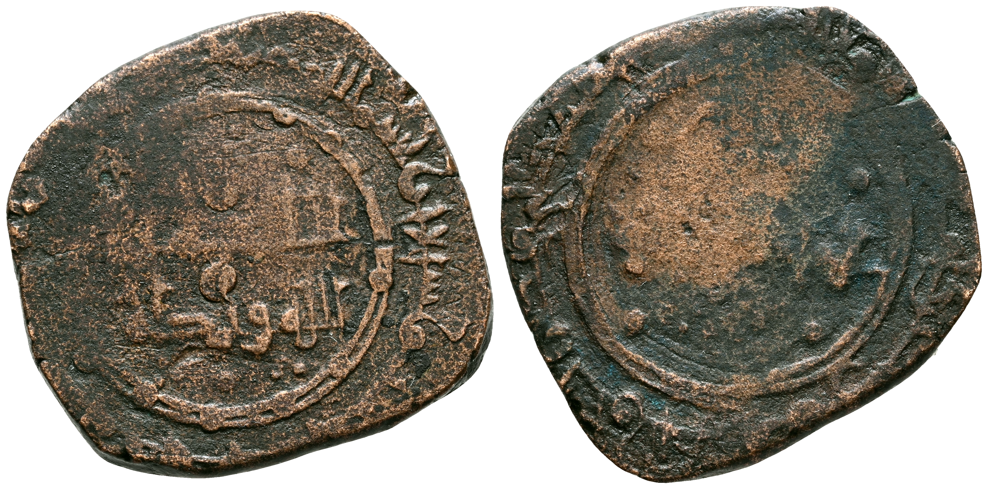 TAIFAS DEL CALIFATO, TOLEDO (Banu Du-l-Nun). Yahya II al-Qadir. Dirham. (Ve. 4,14g/21mm). 476H. Madinat Tulaytula (Toledo) / مدينة طليطلة. (Vives 1126; Prieto 347a). MBC-. Acuñación floja. Muy rara, más aun con la fecha perfectamente visible. Incluye etiqueta con anotaciones y dibujos de época del coleccionista.