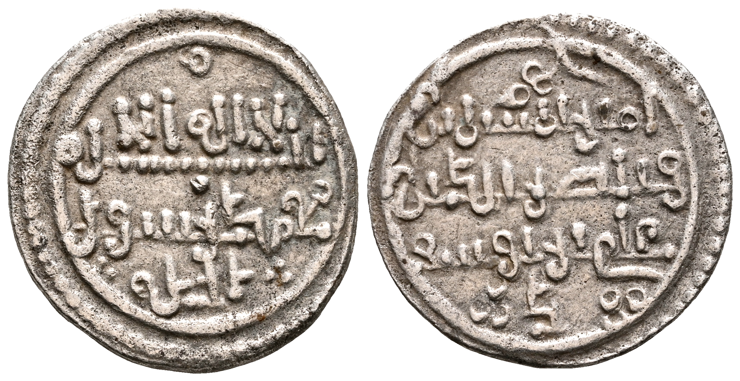 ALMORÁVIDES, Ali ben Yusuf (500-537). Quirate. (Ar.0,92g/12mm). S/D. (Vives 1708; Hazard 928; Benito Cc9). Anv: 'Shahada' en cuatro líneas. Rev: Presenta a Ali con títulos de Amir al-Muslimin y Nasir al-Din. MBC+.