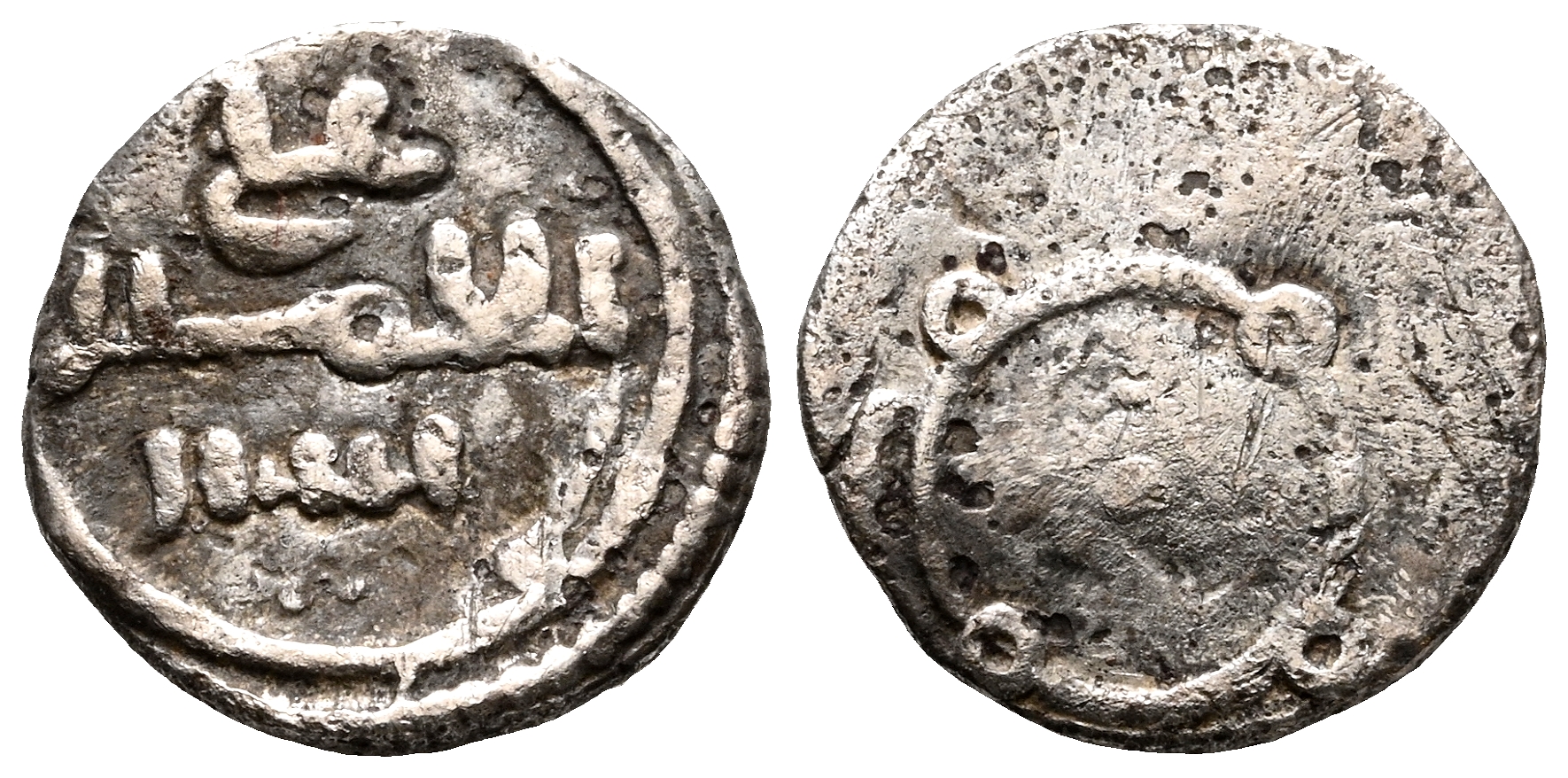 ALMORAVIDES, Ali Ibn Yusuf (500-537H). 1/2 Quirate. (Ar. 0,43g/8mm). S/D. (Benito Cd3). Anv: سير / الامير / علي (Ali/el Emir/Sīr). Rev: Adorno circular con cuatro roeles. MBC. Escasa.