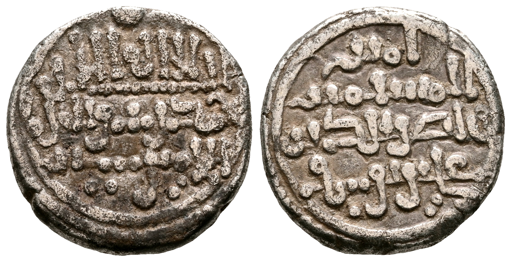 ALMORAVIDES, Alí Ibn Yusuf y el Emir Sïr (522-533H). Quirate. (Ar. 0,96g/10mm). S/D. (Vives 1775; Benito Cf3). Anv: 'Shahada' en tres líneas, debajo mención al heredero: الامير سير. Rev: Presenta a Ali con títulos de Amir al-Muslimin y Nasir al-Din. MBC+.