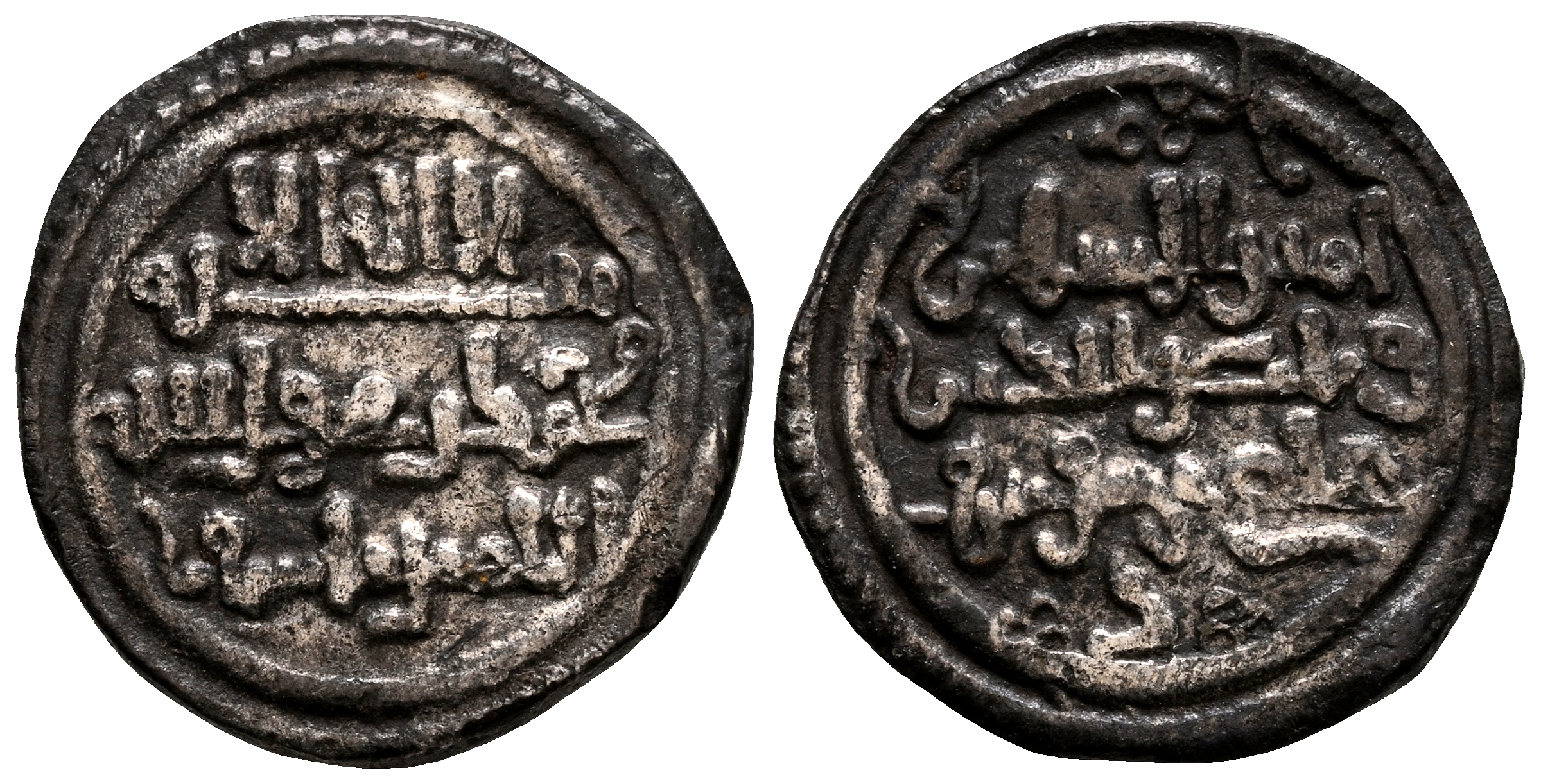 ALMORÁVIDES, Ali ben Yusuf y el emir Tashfin (533-537H). Quirate. (Ar. 0,92g/12mm). S/D. (Vives 1824; Medina 139; Benito Cj3). Anv: 'Shahada' en tres líneas, debajo mención al heredero: الامير تاشفين. Rev: Presenta a Ali con títulos de Amir al-Muslim in y Nasir al-Din. MBC.