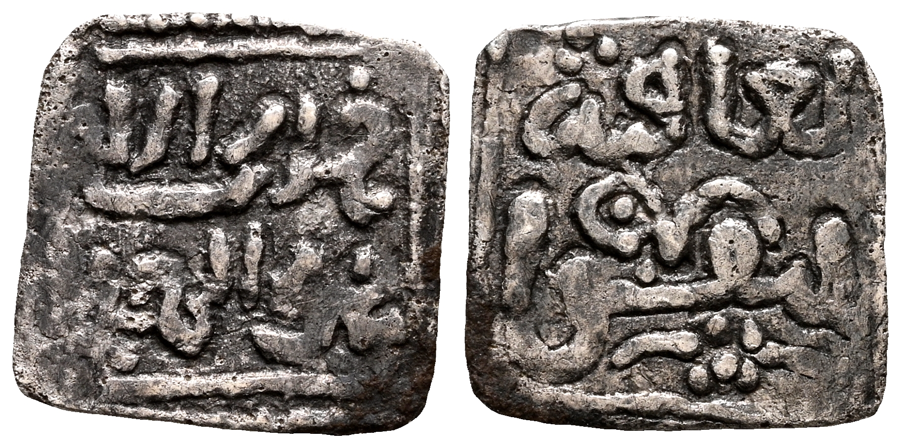 ALMOHADES, Anónimo. 1/4 Dirham. (Ar. 0,21g/9mm). (Vives 2209, como Nazarí; Medina 203a; Hohertz 636). Anv: هدى الله / هو الهدى. (La guía de Allah / es la guía). Rev: العا قبة / التقوا. (La recompensa del más allá / pertenece a los devotos). MBC.