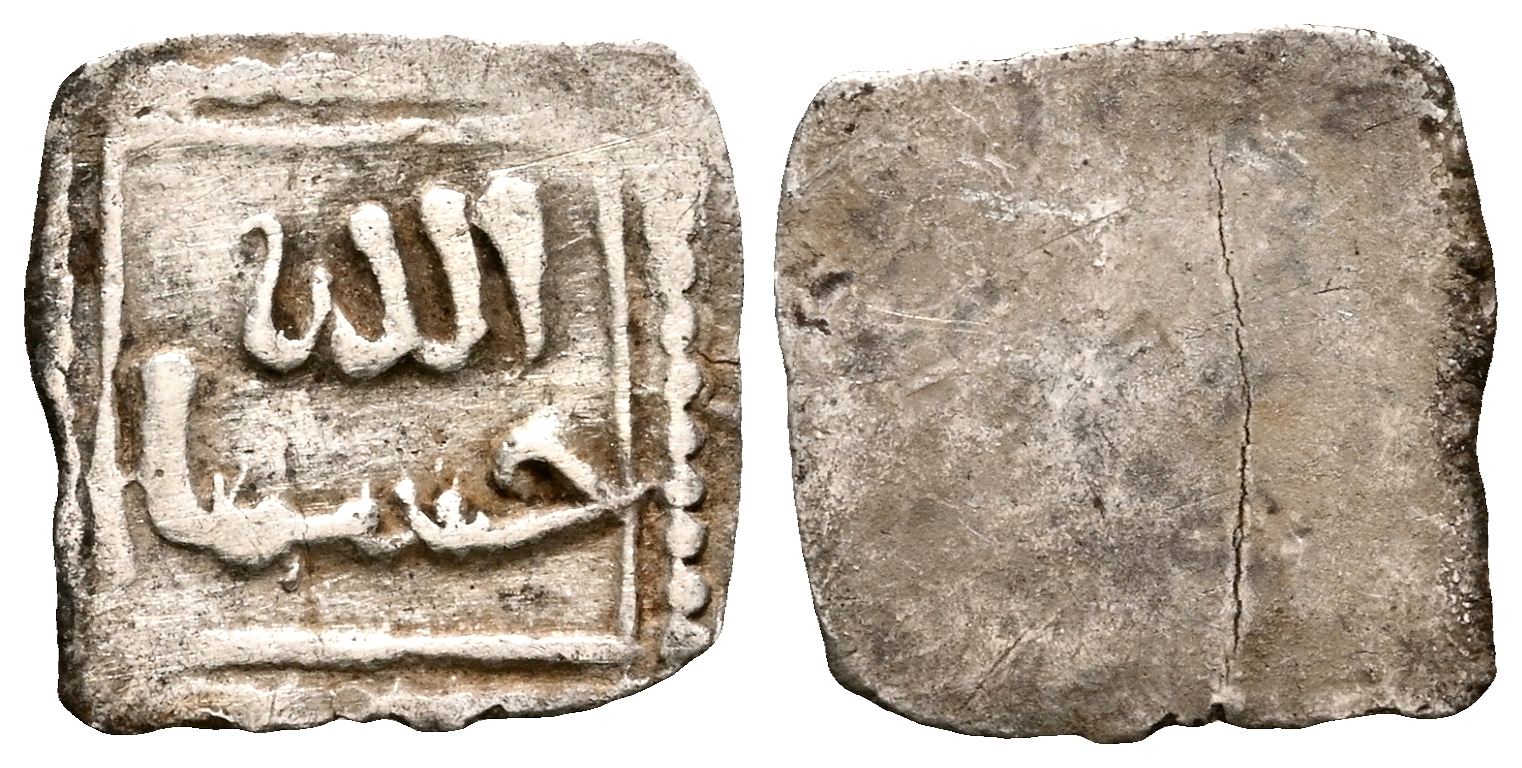 ALMOHADES, Anónimo. 1/8 Dirham. (Ar. 0,10g/7mm). S/D. (Hohertz 645; Medina 203c, variante sin ceca). Anv: حسبنا / الله (Dios me basta). Rev: Anépígrafo. MBC. Rara.