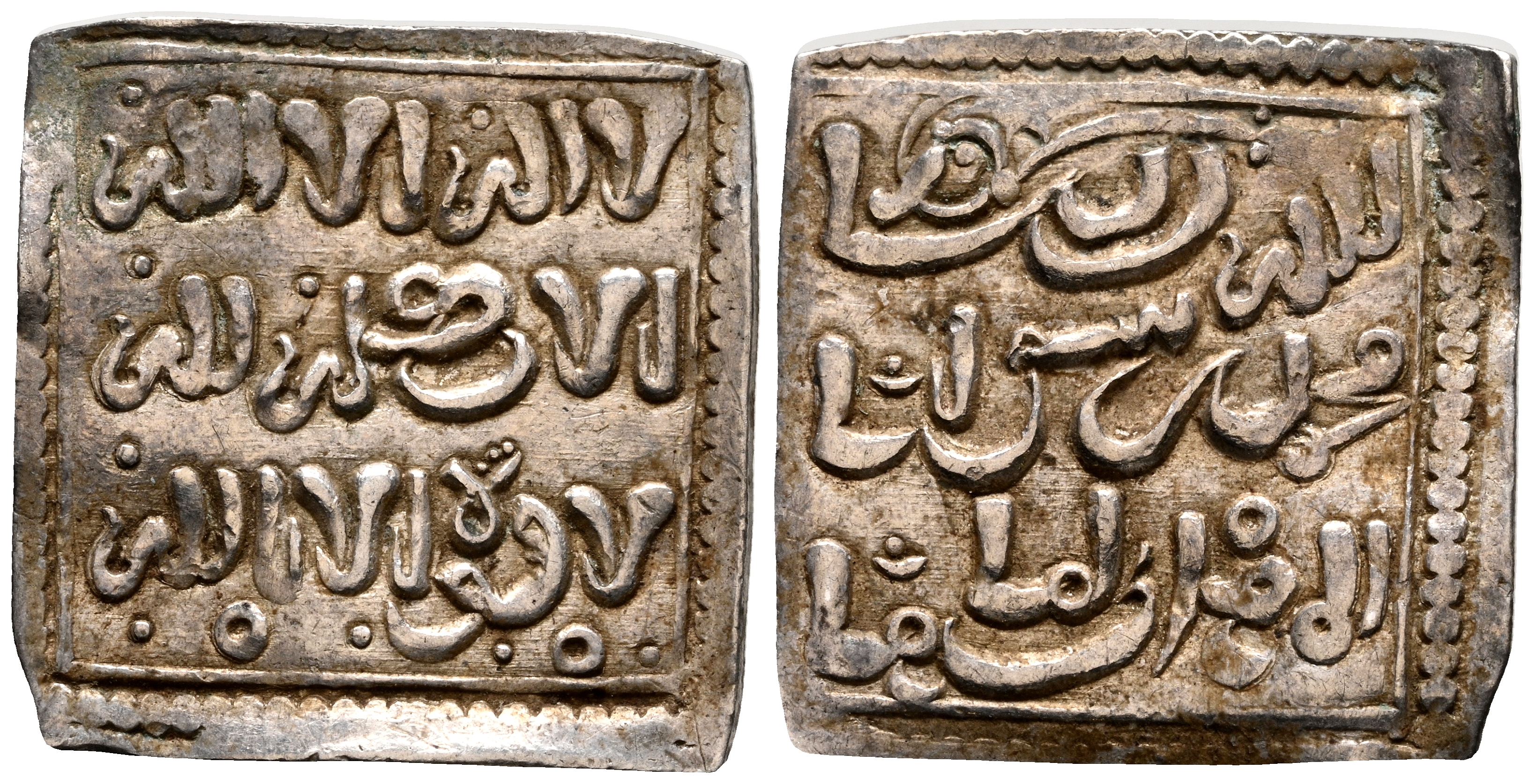 ALMOHADES. Millarés. (Ar. 1,45g/16mm). Siglo XIII. Imitación cristiana de un dirham almoháde a nombre de Al-Mahdi. (Medina 201-bis; Hohertz 651). MBC+.