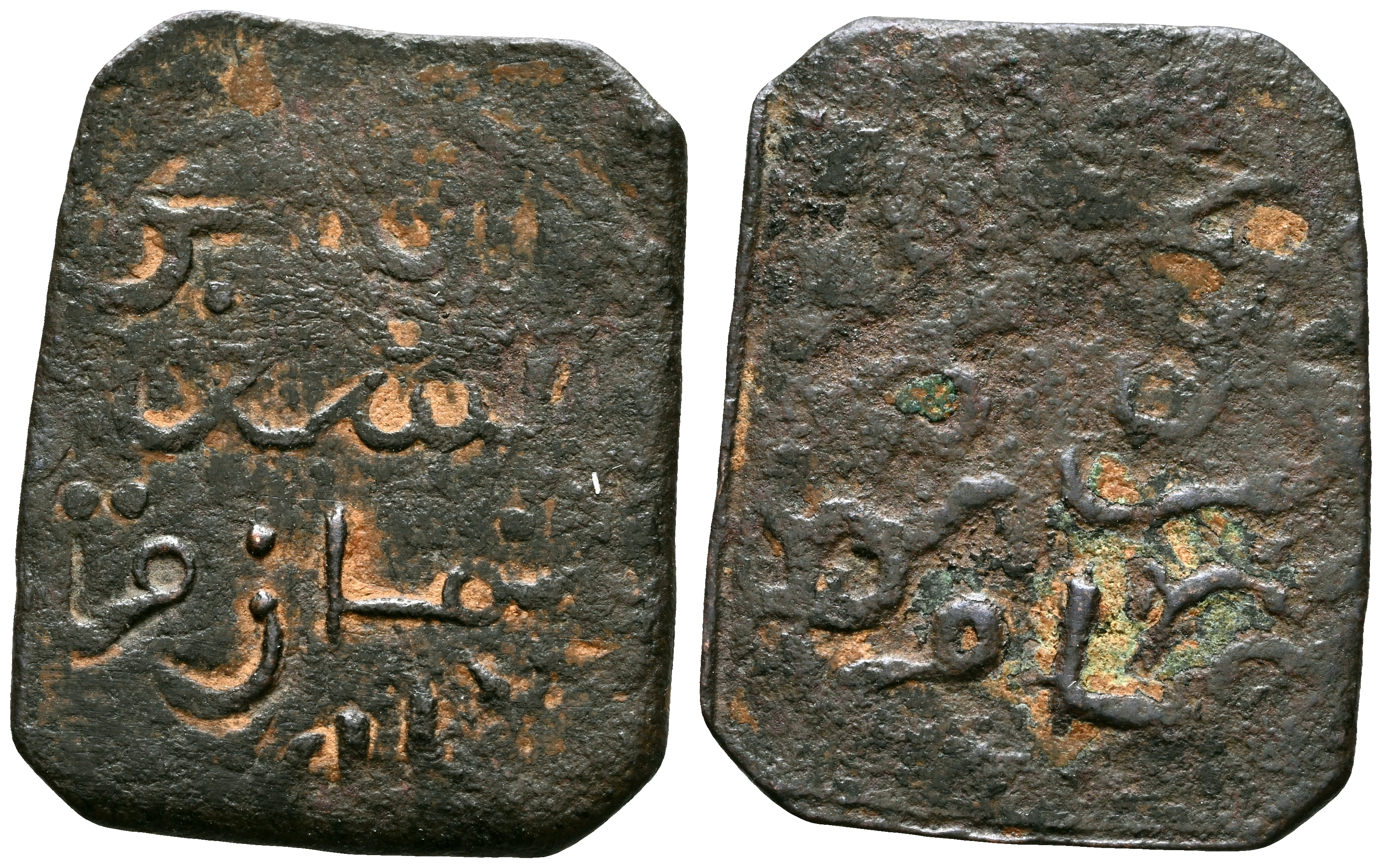 NAZARÍES DE GRANADA, Anónimo. Felús. (Ae. 1,53g/21mm). 892H. Bi-Gharnata / بــغرناطة. (Vives 2224; Hohertz 789a; Al-Nars FM:14.1). Singular adorno en forma de ramillete vegetal a la izquierda de la palabra عام. MBC. Escasa.