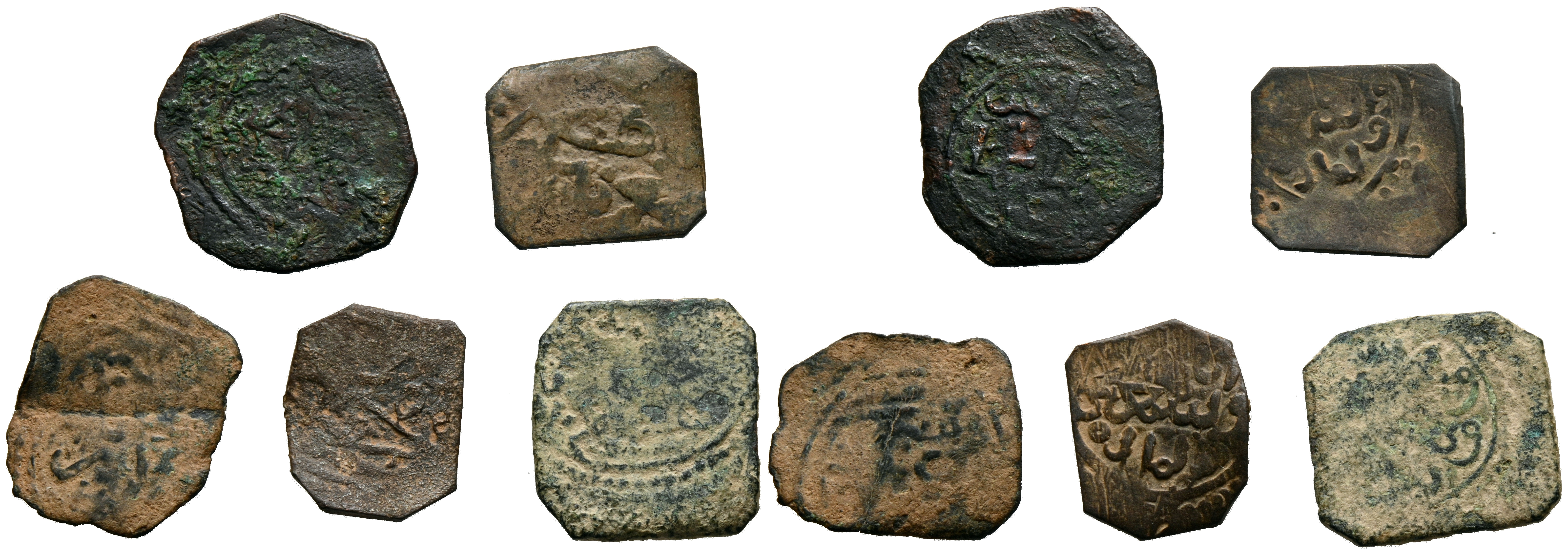 NAZARÍES DE GRANADA. Interesante conjunto formado por cinco escasos féluses con ceca Bi-Gharnata / بــغرناطة. Diferentes medidas y estados de conservación. A EXAMINAR.